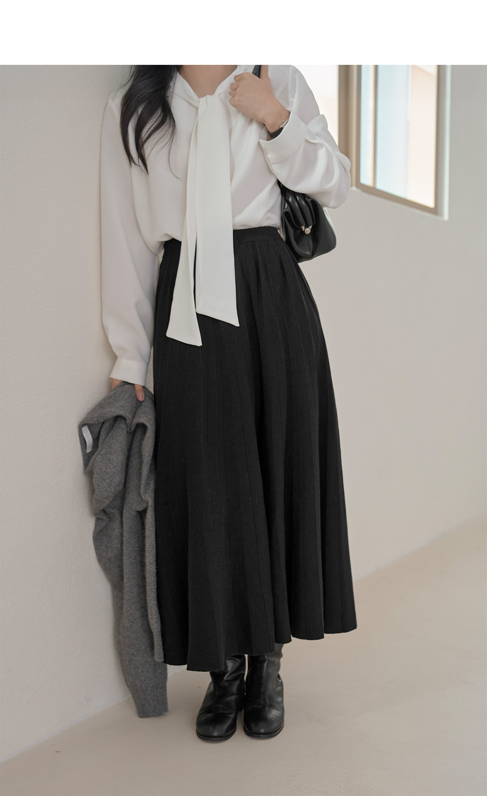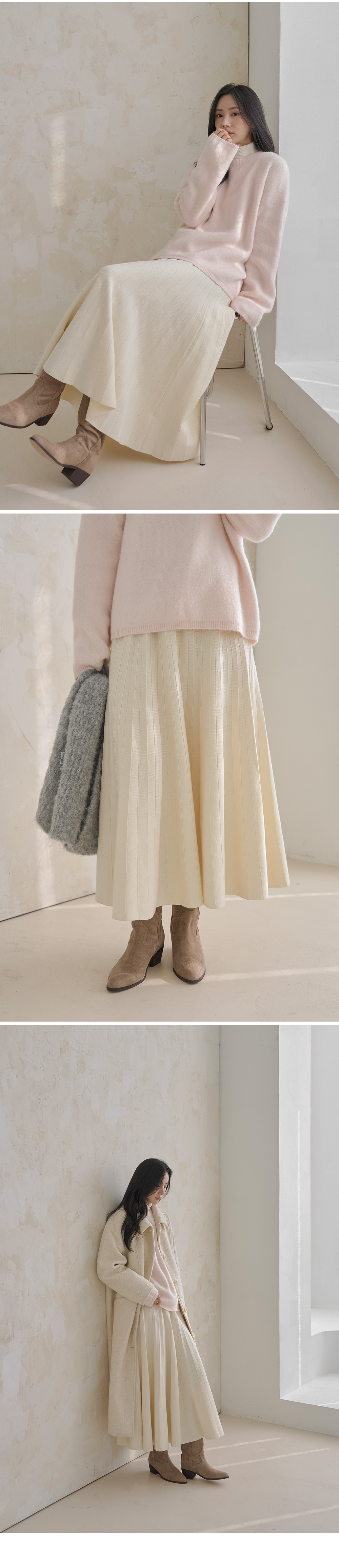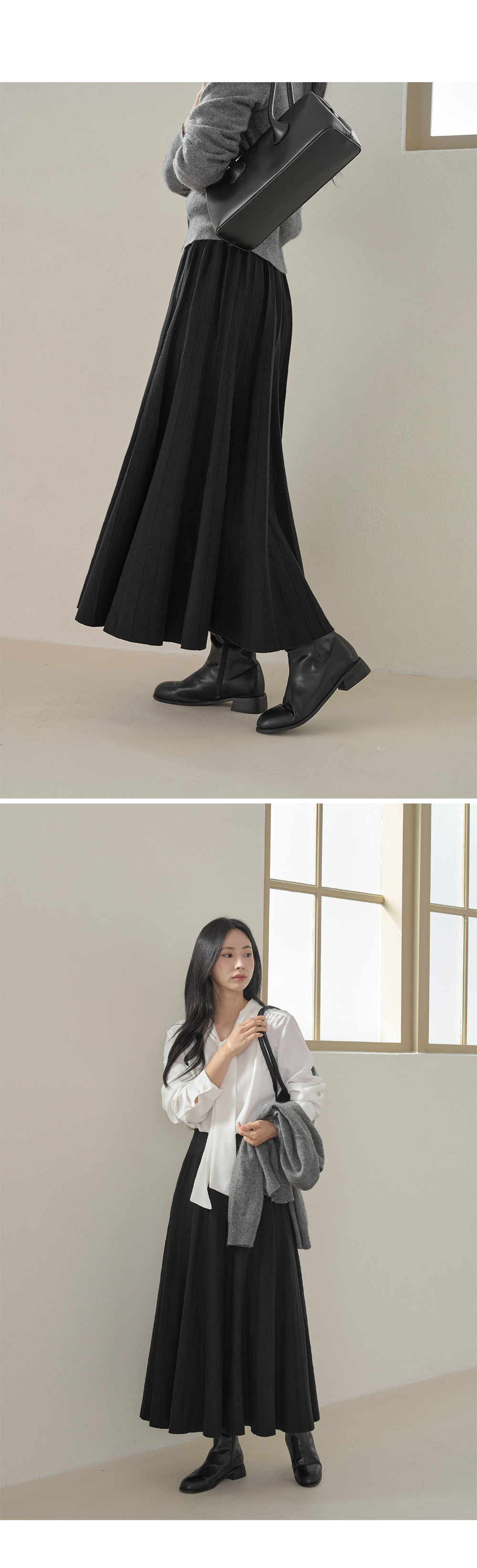 세르쥬 밴딩 니트 플레어 롱 스커트 79301