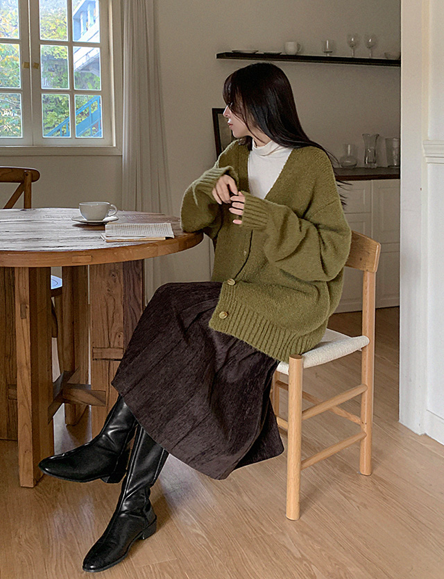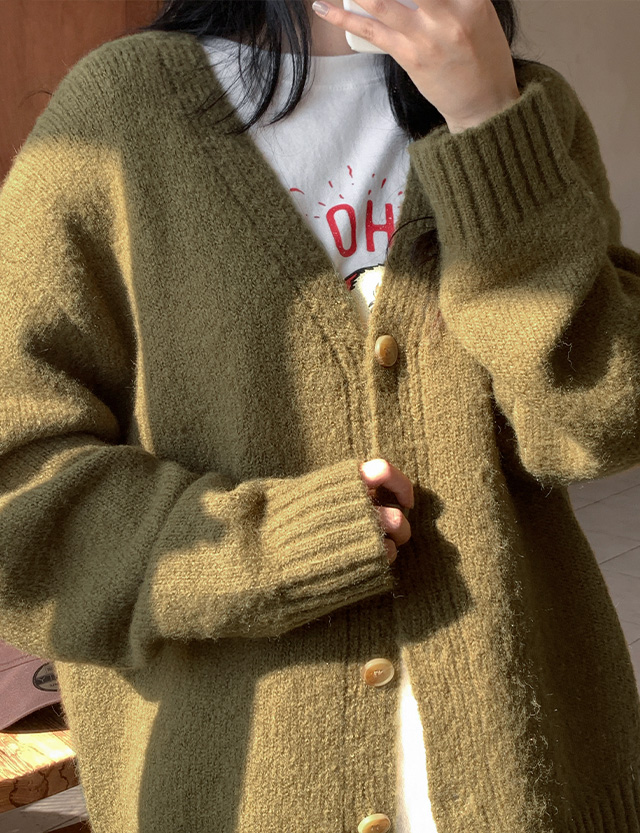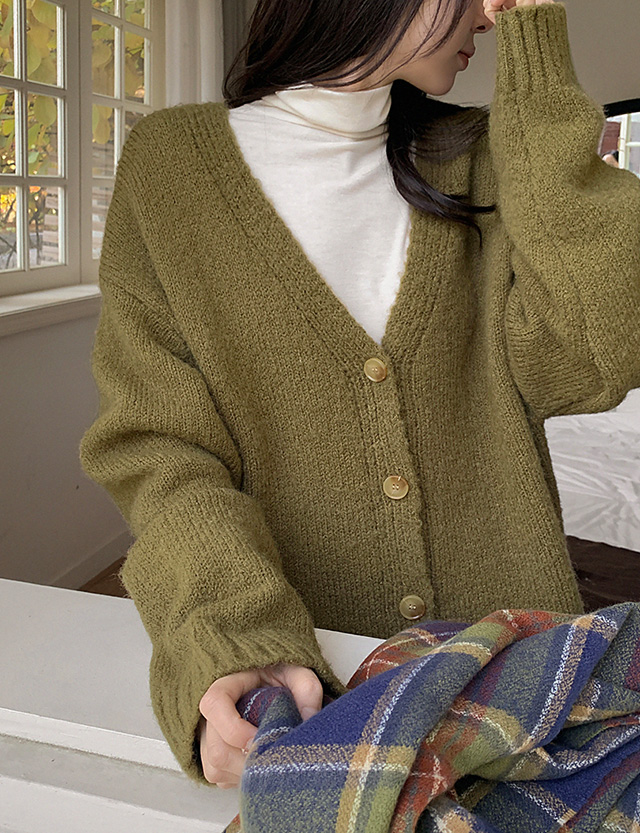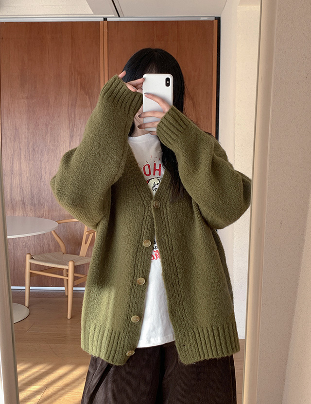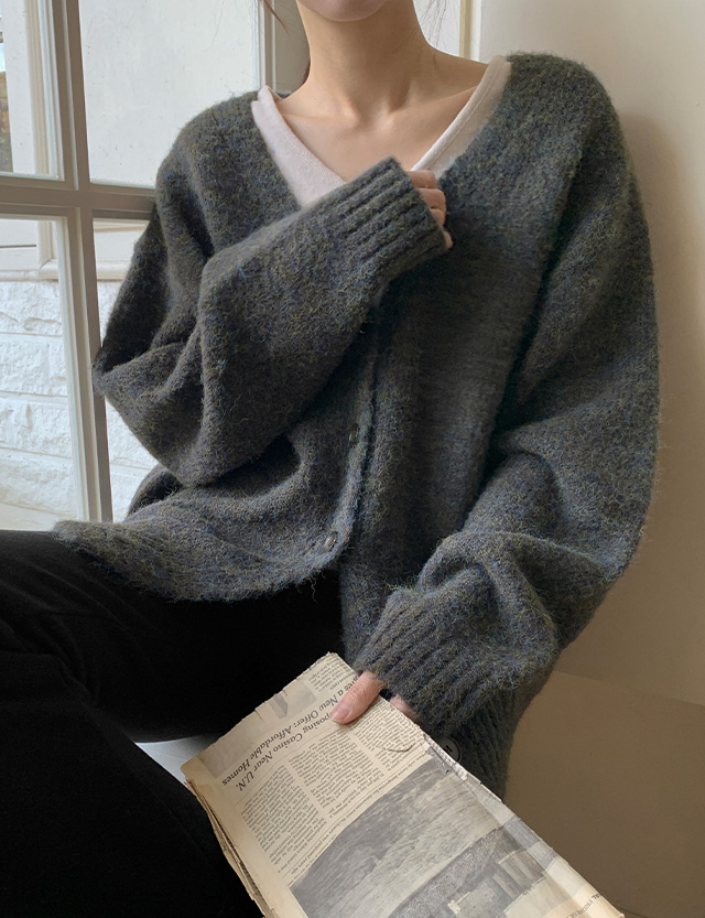 러비르 루즈핏 브이넥 니트 가디건 85144