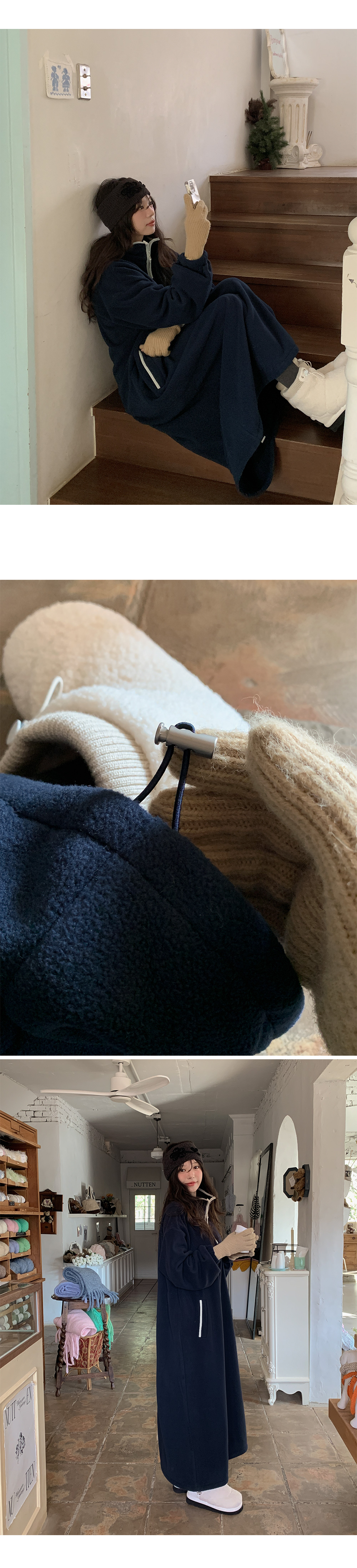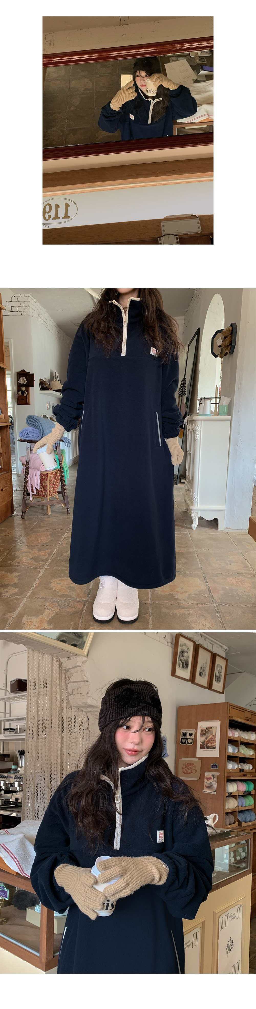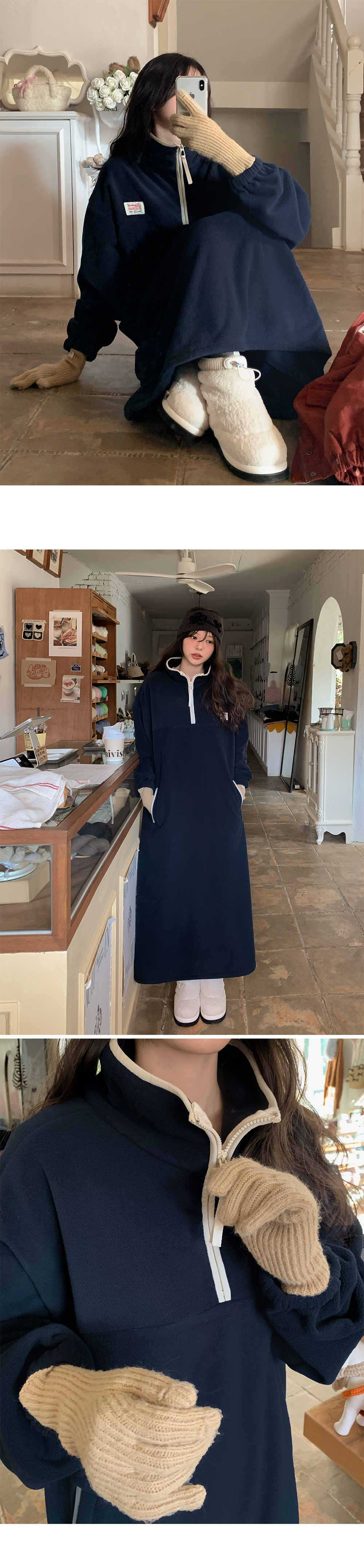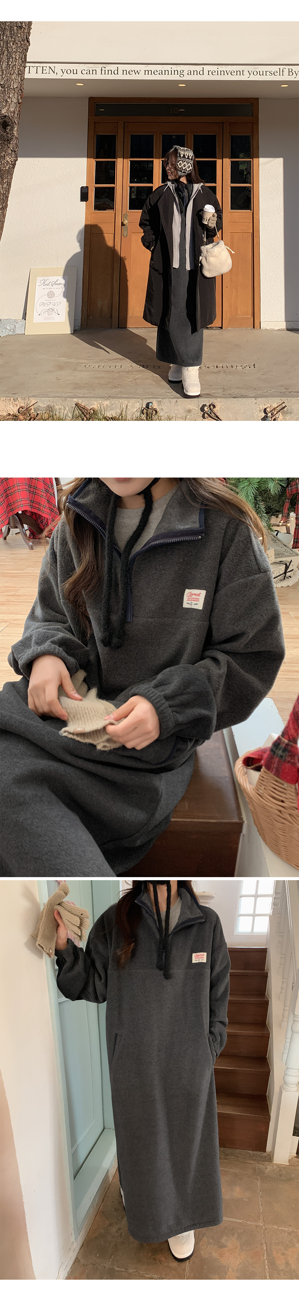 포근하고 편안하게 입는 롱 플리스 원피스