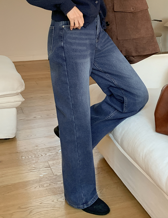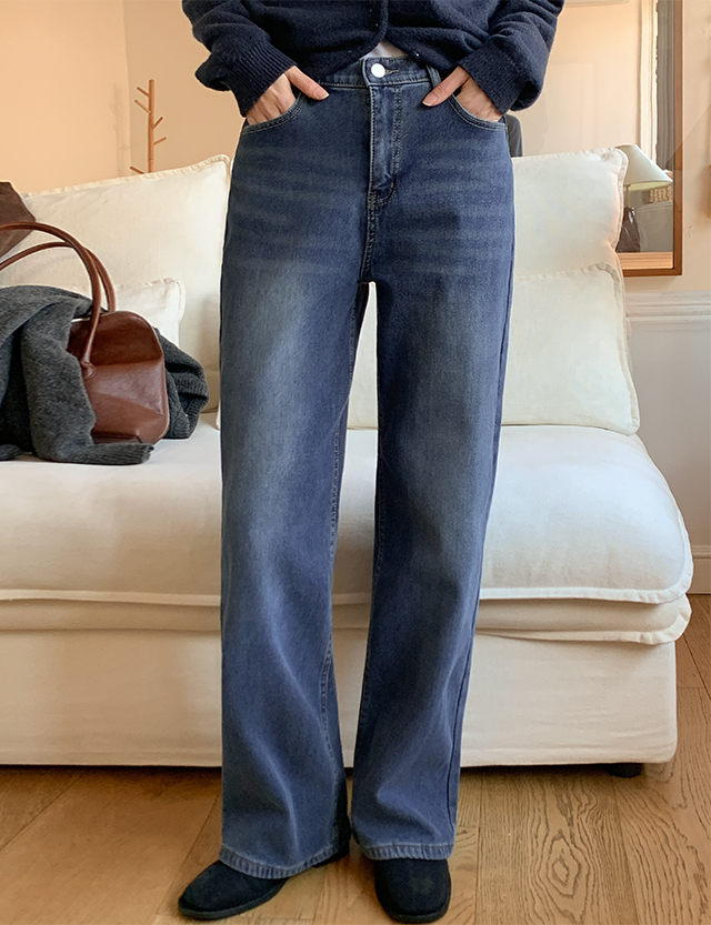 겨울 한파 걱정 끝! 스판짱 기모 와이드 데님 팬츠