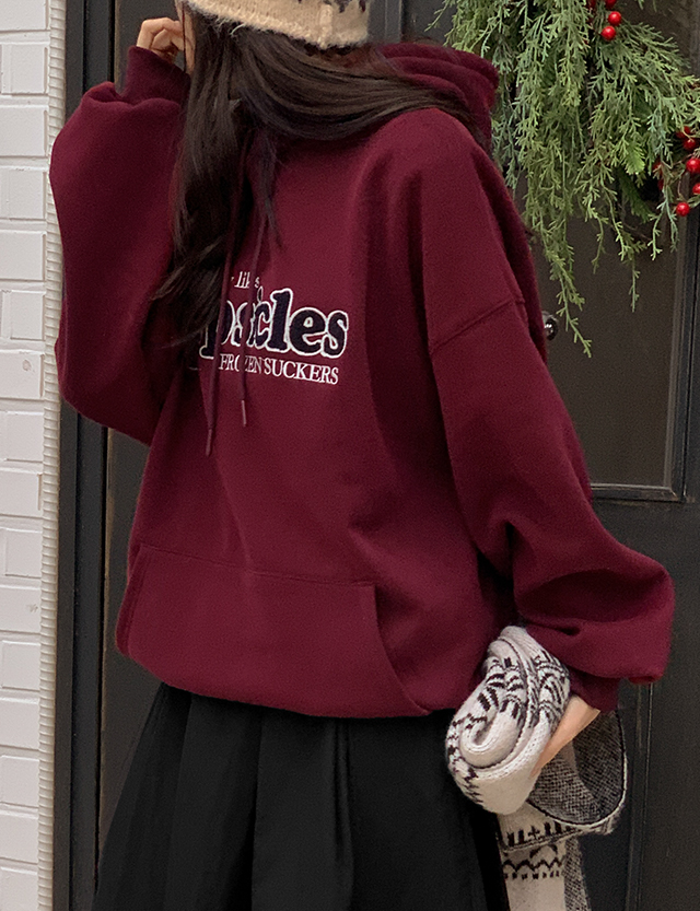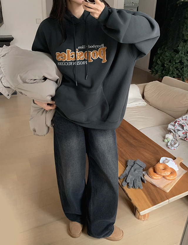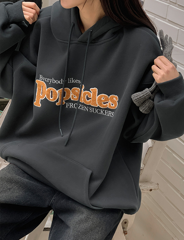 팝시클 루즈핏 밍크기모 후드티셔츠 85326