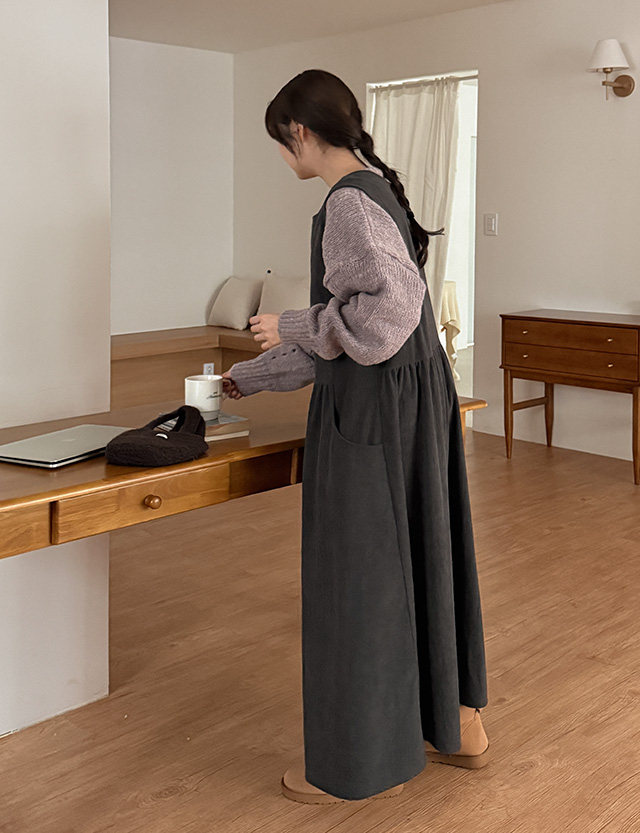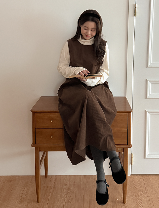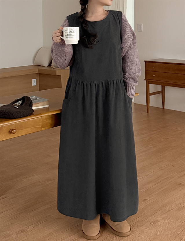 귀여운 무드가 돋보이는 코듀로이 롱 원피스