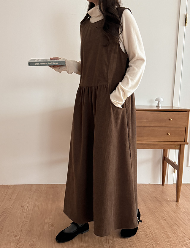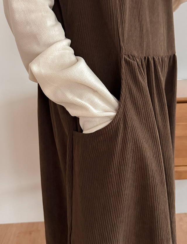 나중엔 편안해서 자꾸 찾게 되는 코듀로이 소재의 원피스.