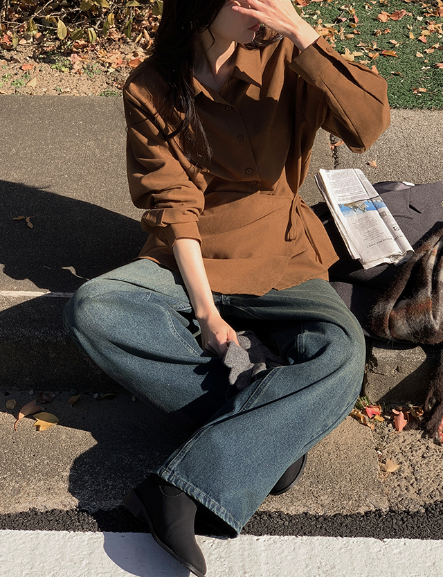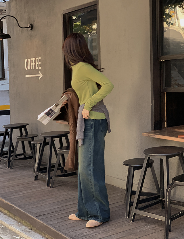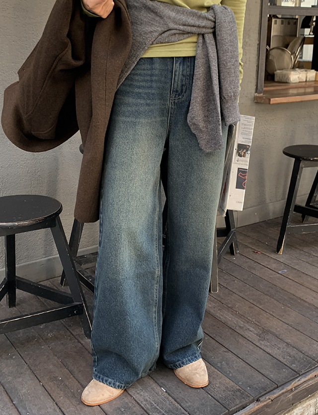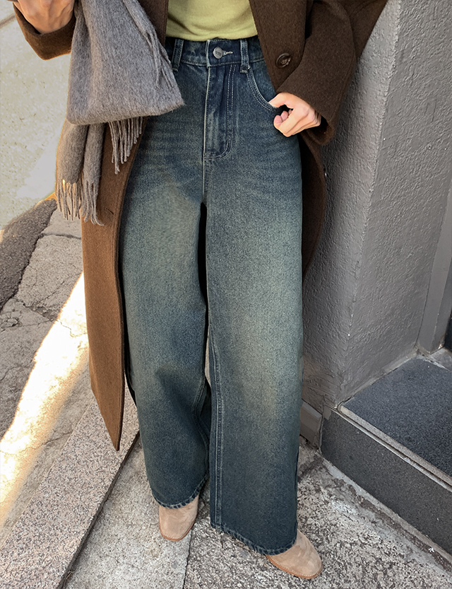 아무옷에나 찰떡 와이드 뒷밴딩 기모 데님 팬츠 85087