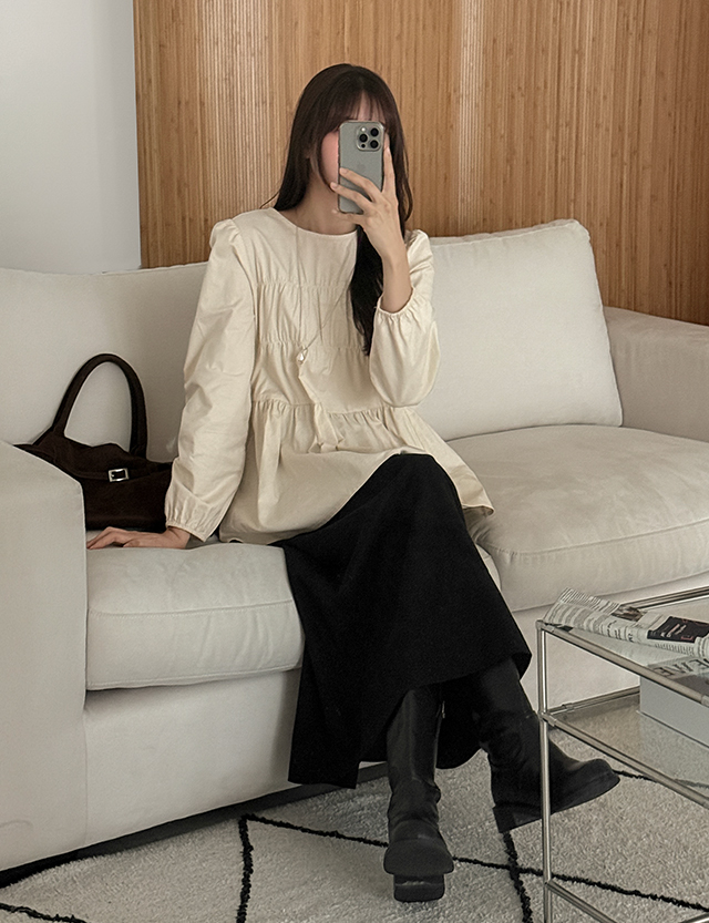 곡선을 타고 잔잔하게 잡힌 셔링으로