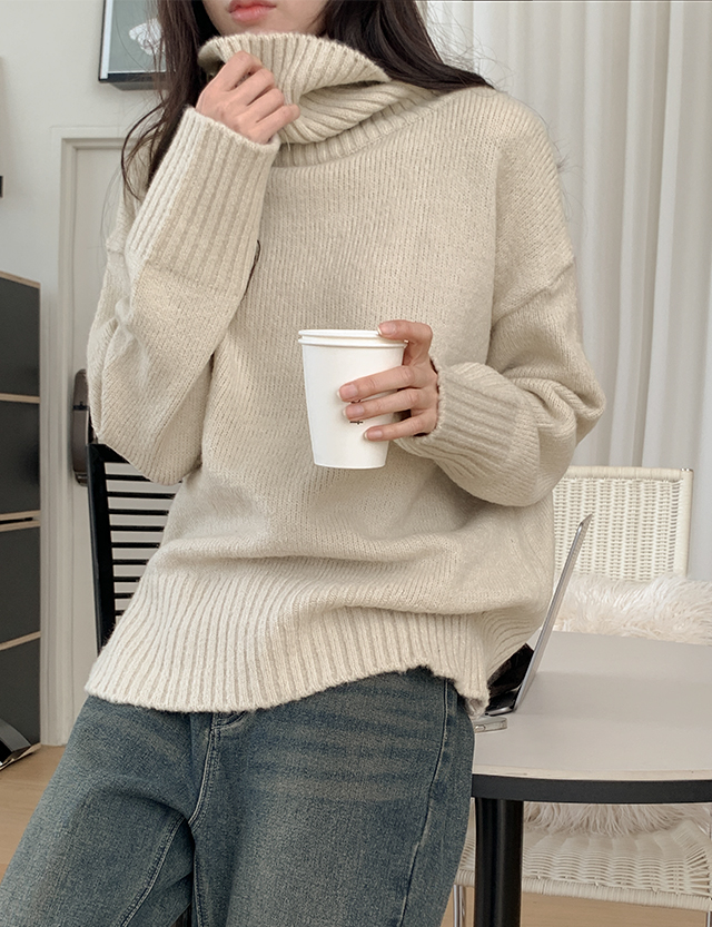 군더더기없이 심플한 기본 하이넥 폴라 니트로
