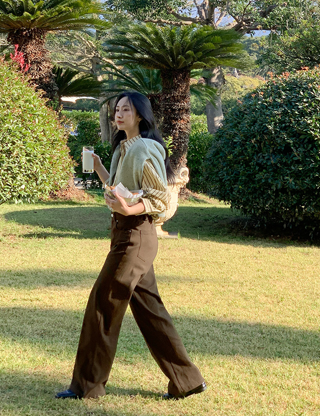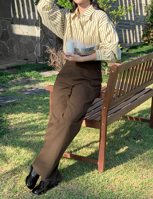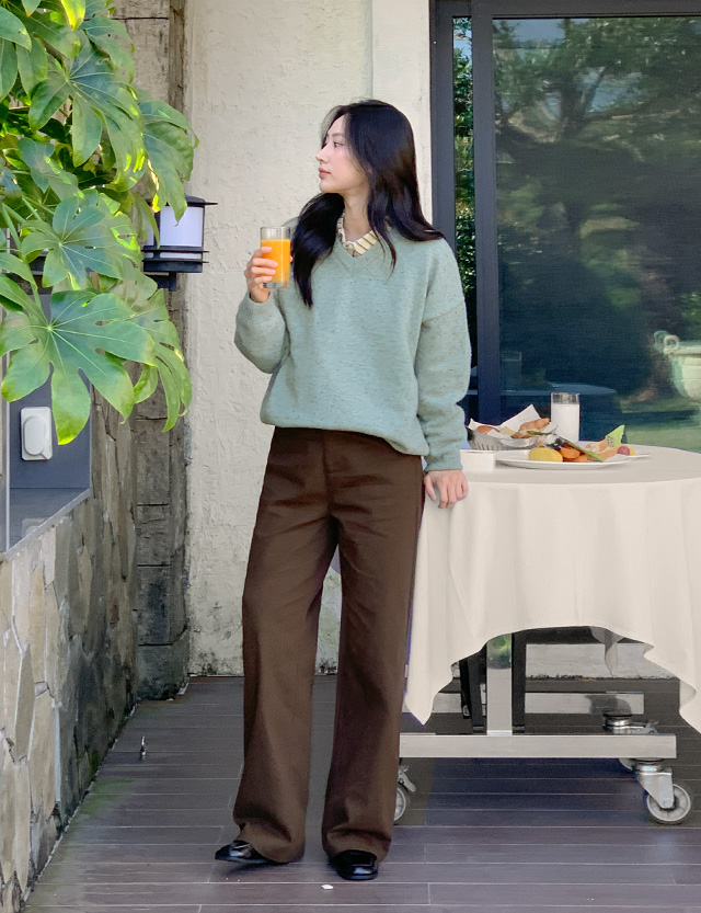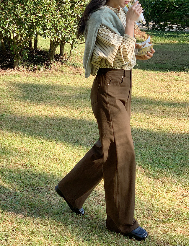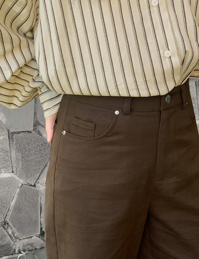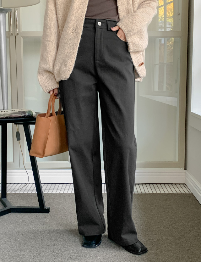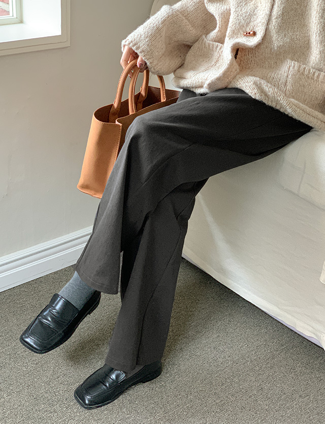 속기모 원단으로 보온성 높은 세미와이드 코튼 팬츠