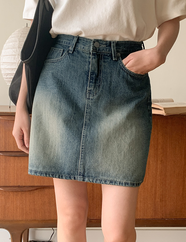 심플하면서도 트렌디한 매력이 있는 데님 미니 스커트