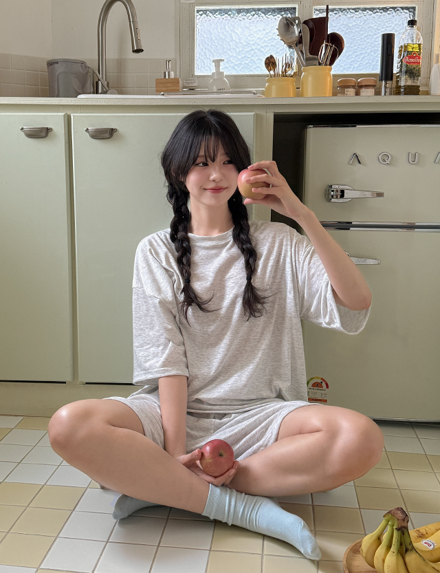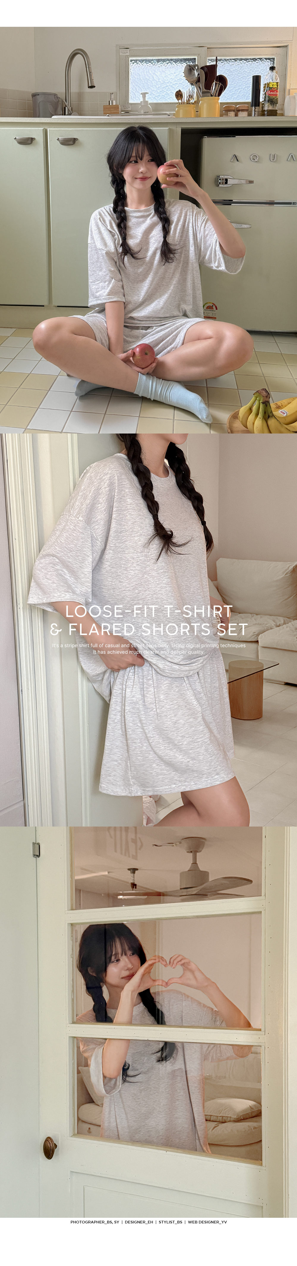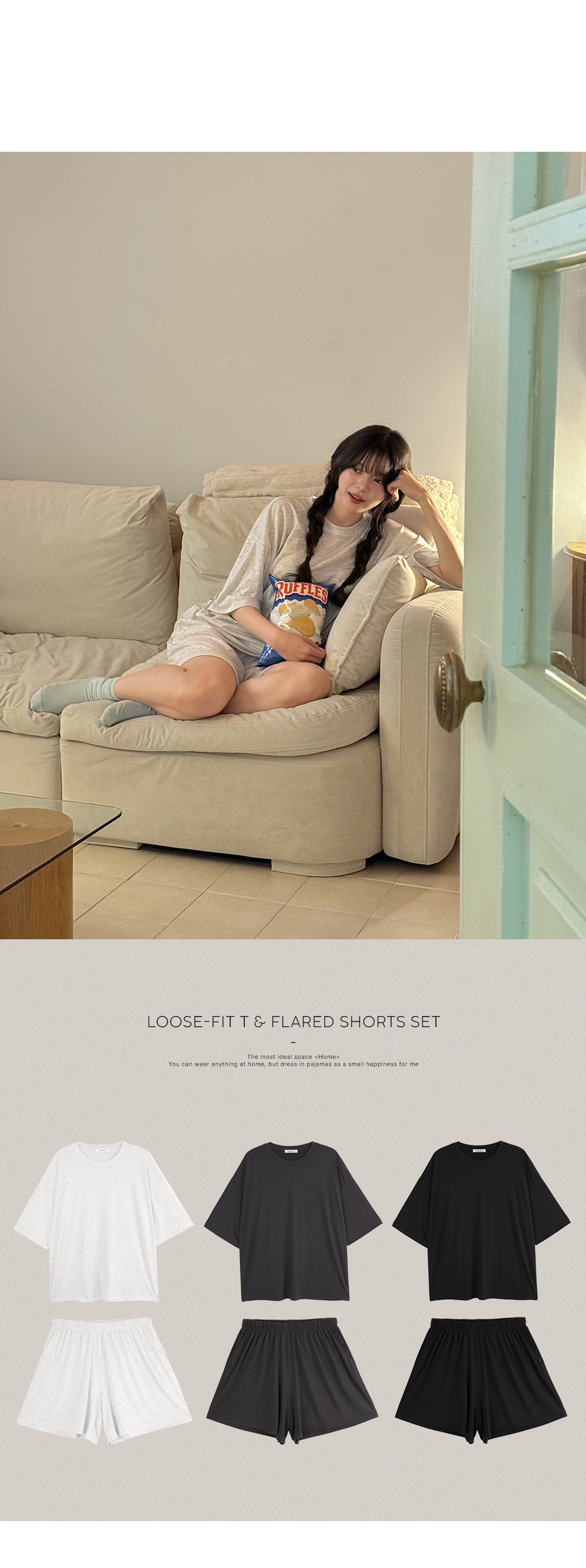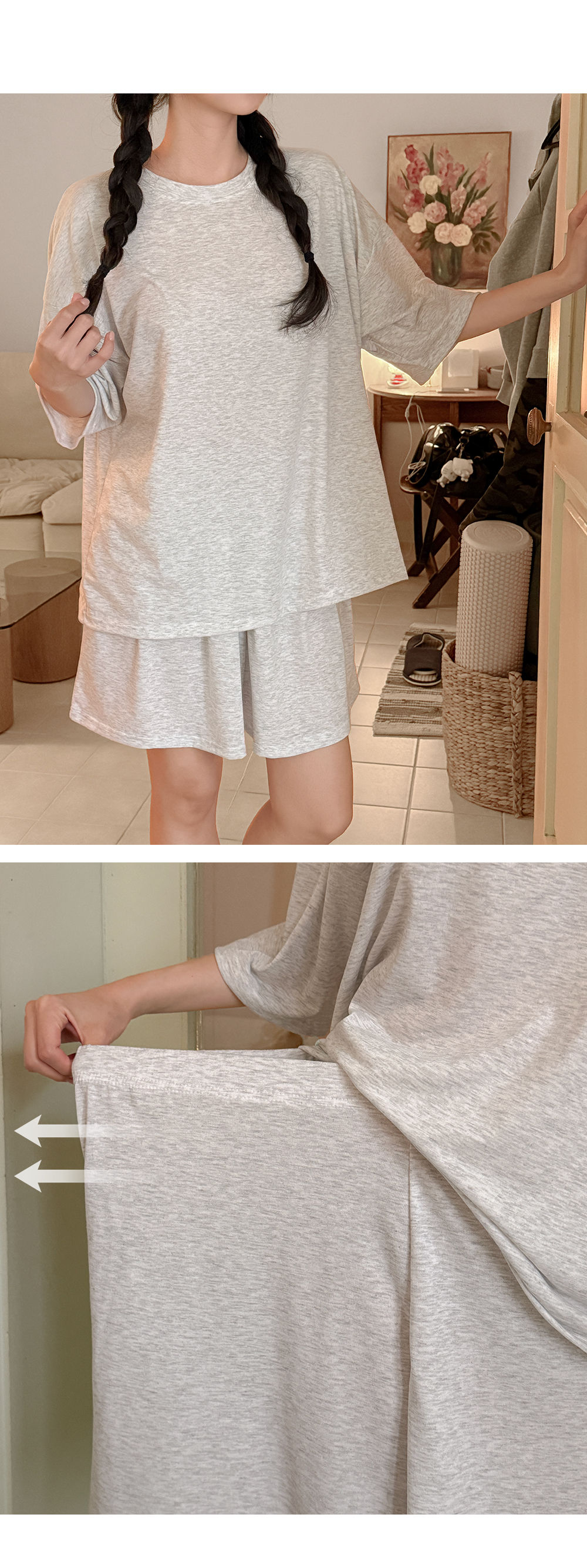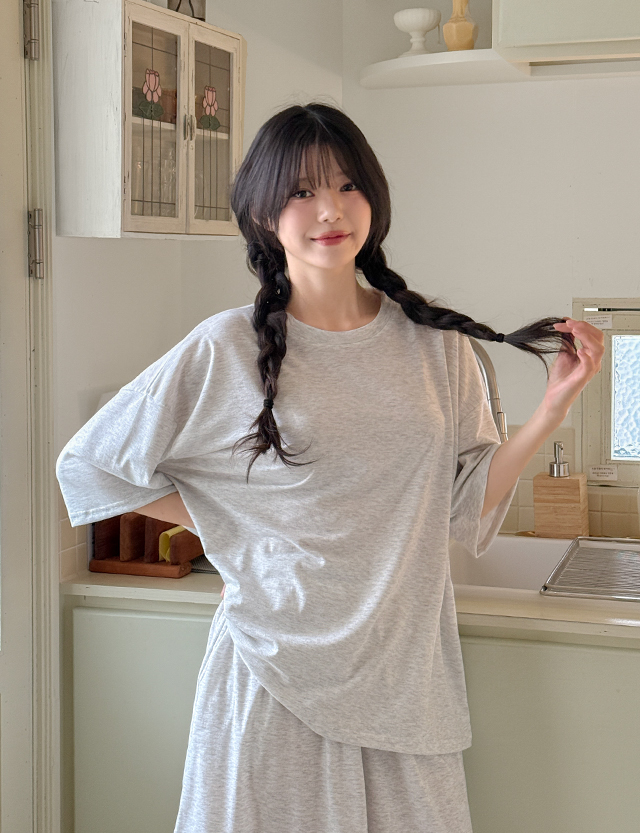 반팔 상의는 전체적으로 넉넉한 루즈핏이라