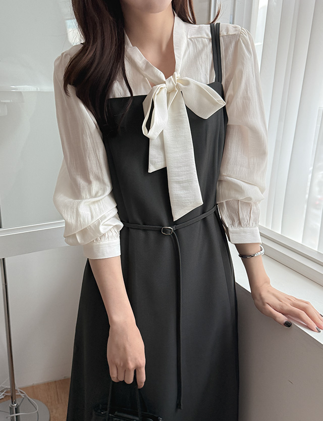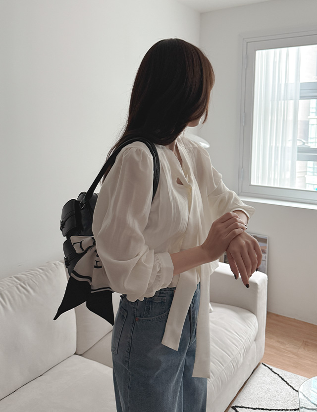 케이린 브이컷 타이 퍼프 블라우스 86114