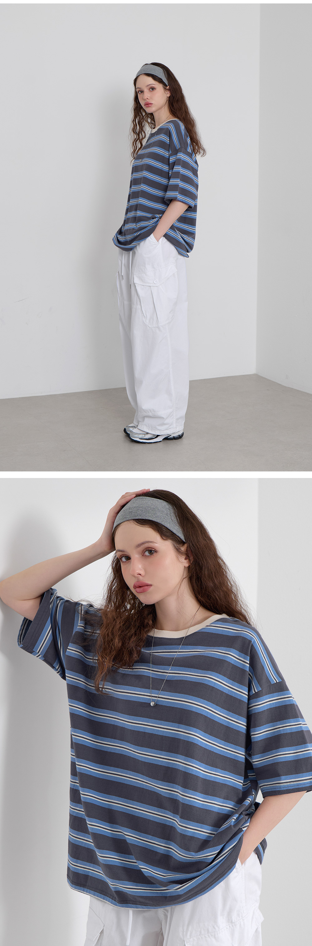 · 상의 하나만으로 포인트가 완성되는 스트라이프 티셔츠