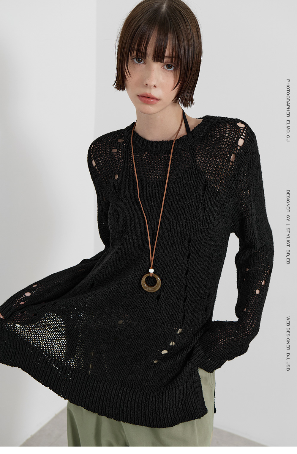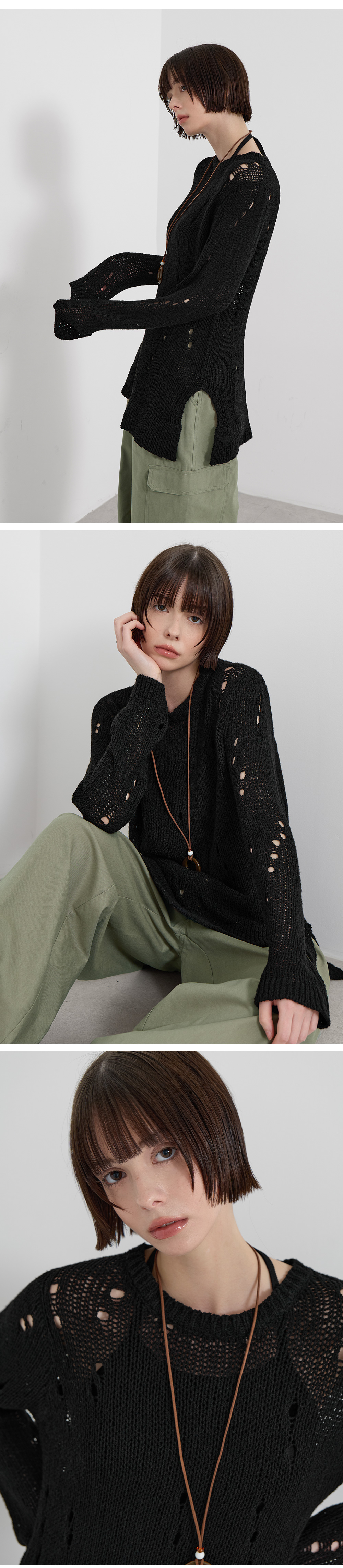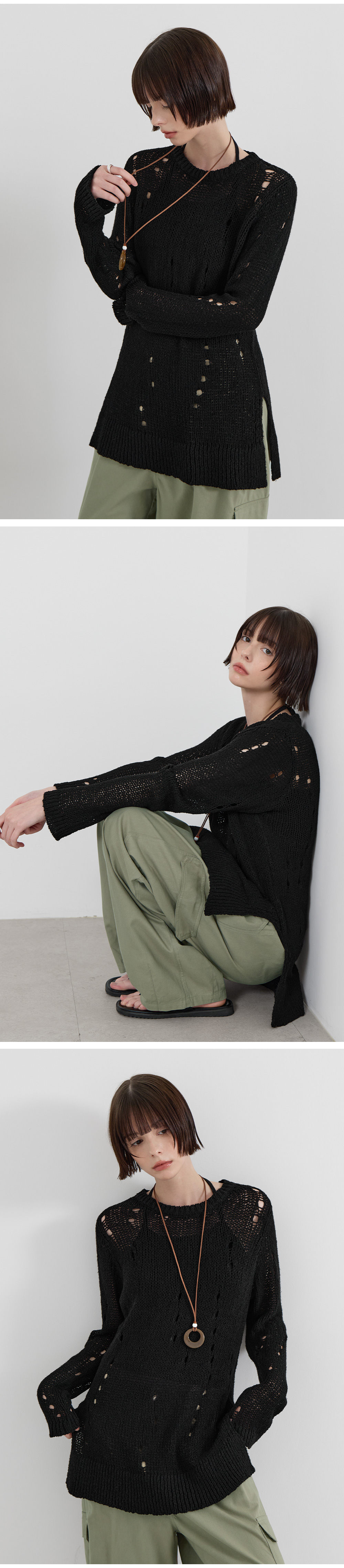 · 유니크하면서 여리한 무드를 연출해주는 데미지 니트