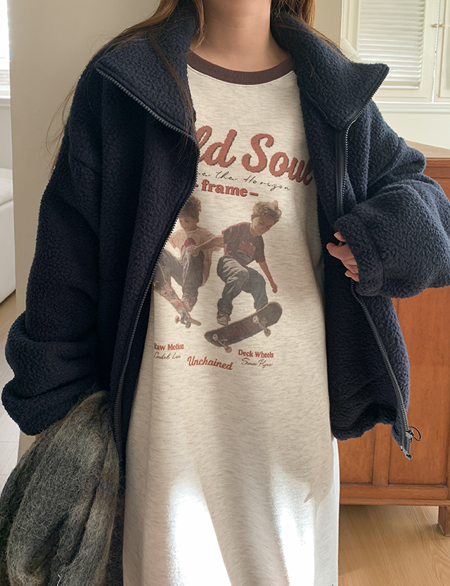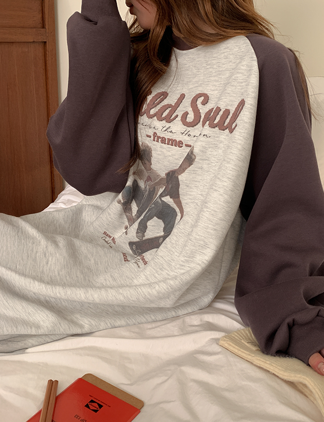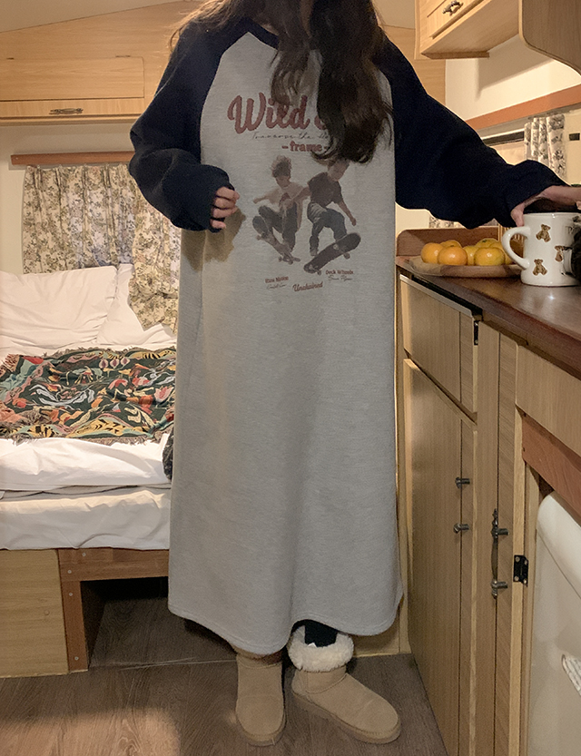 프레임 나염 나그랑 맨투맨 기모 원피스 85081