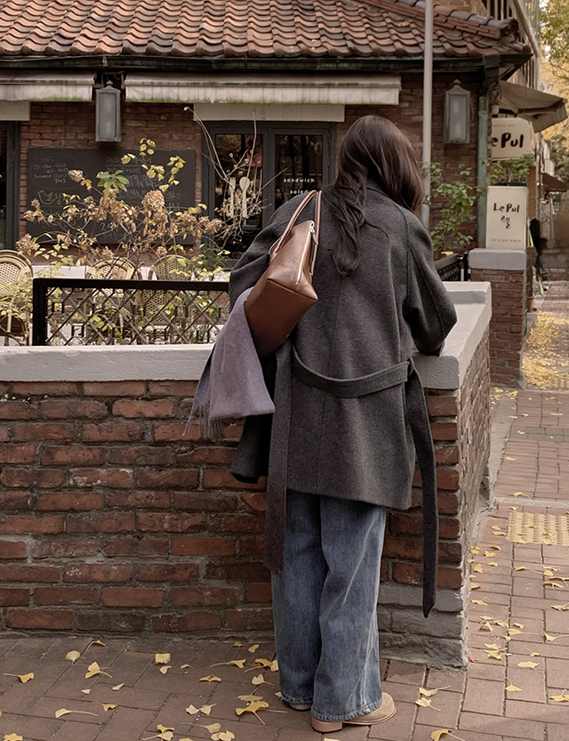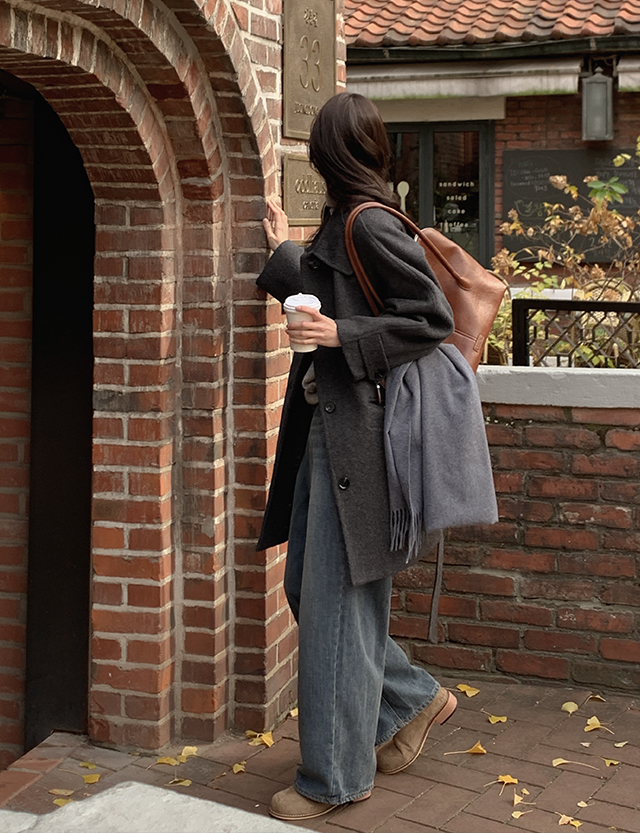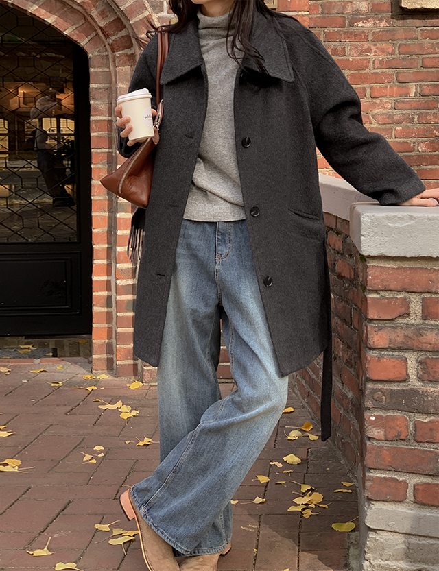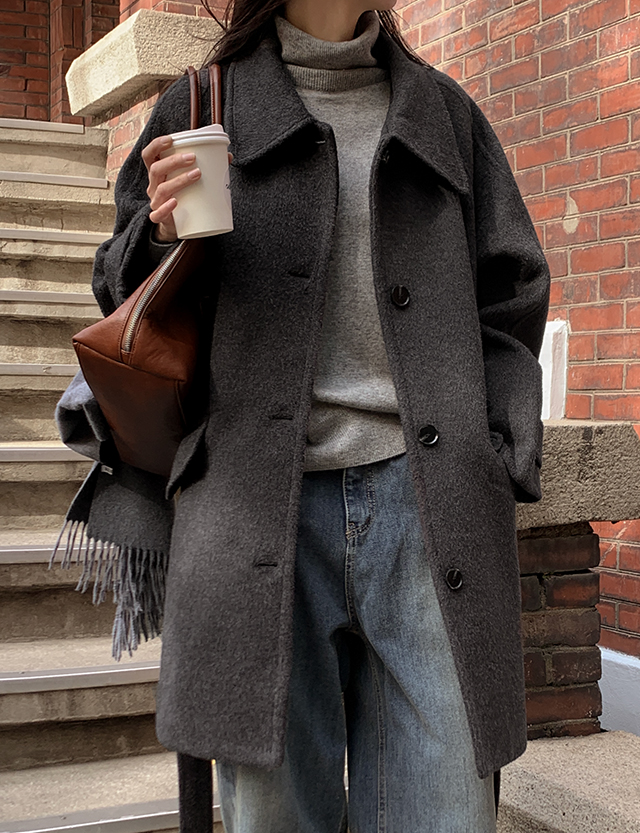 매일의 룩에 자연스럽게 녹아드는 하프 기장의 싱글 코트예요.