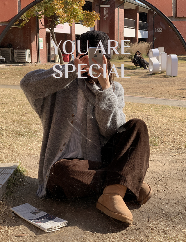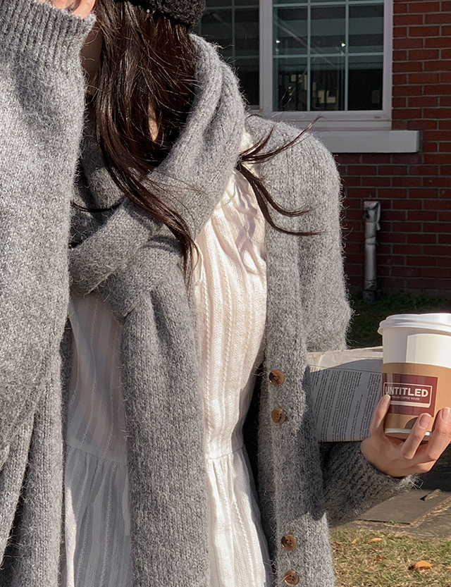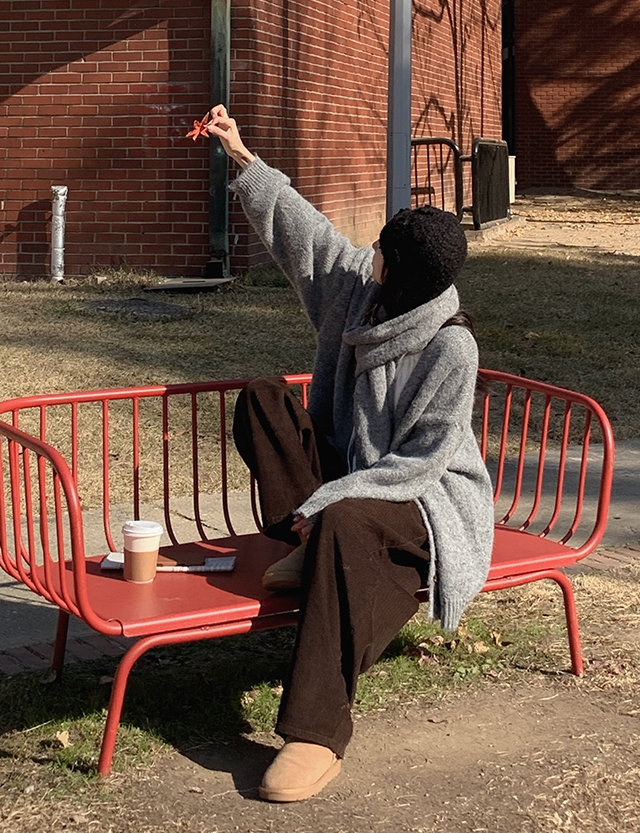 가디건과 세트로 연출하면 한층 더 포근한 겨울 스타일을 만들 수 있어요.