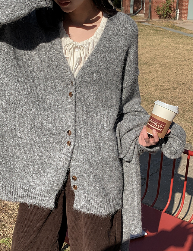 [목도리 세트] 러비덥 브이넥 루즈핏 울 가디건 85090