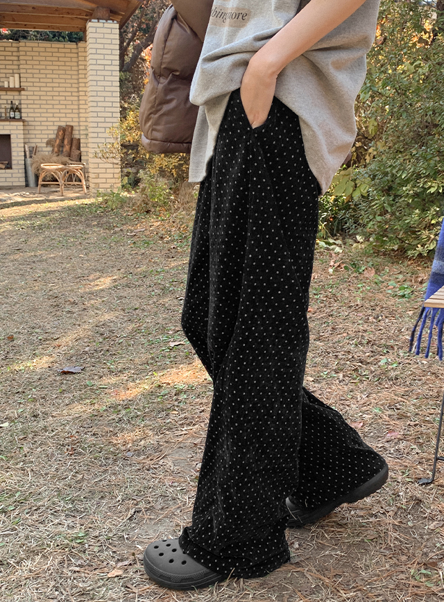 달콤 벨벳 밴딩 도트 와이드 팬츠 85172