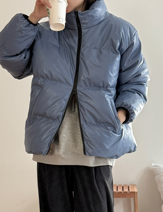 빛으로 감싼 듯, 글로시 레더 패딩 🤍