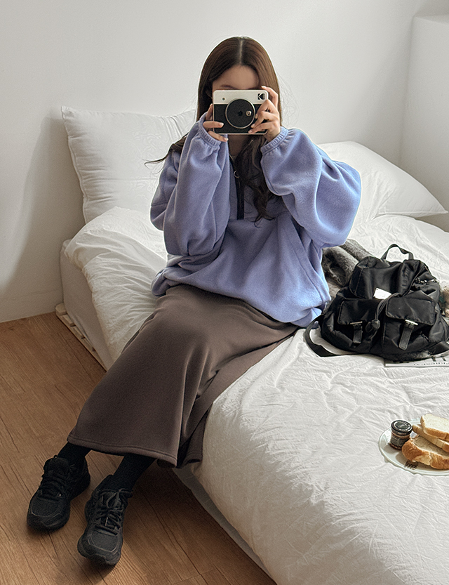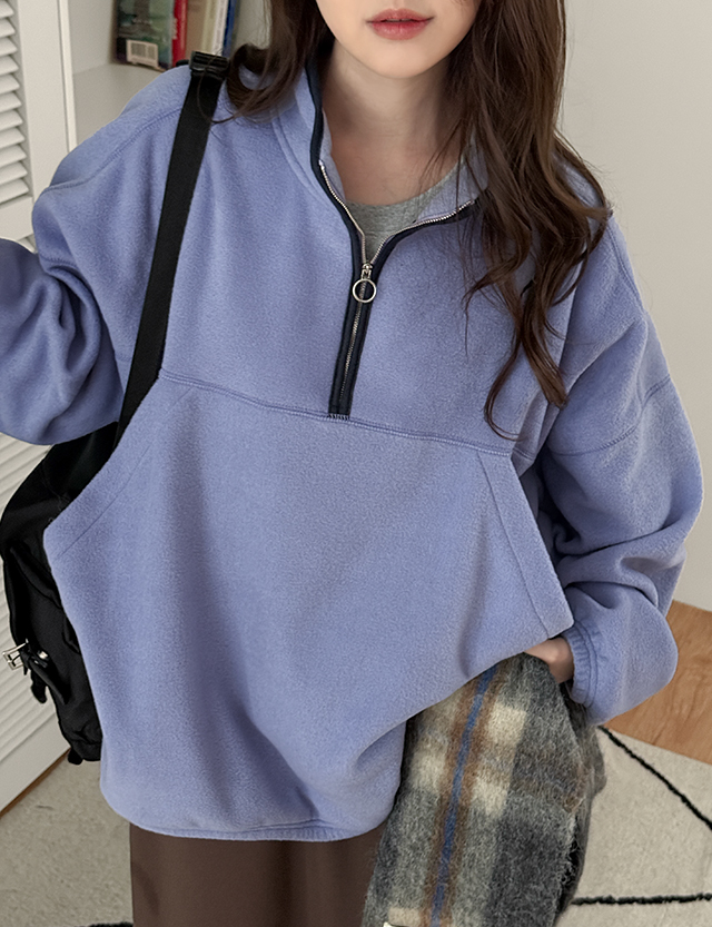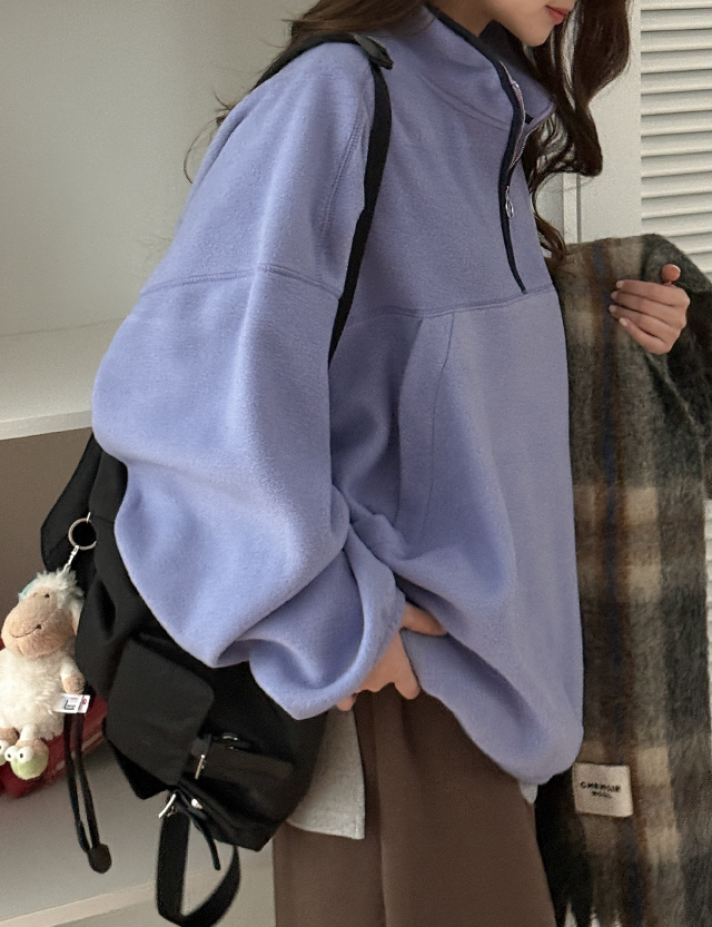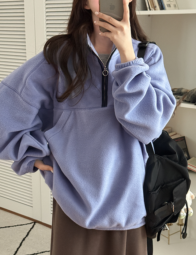포티 컬러 반집업 플리스 맨투맨 85235