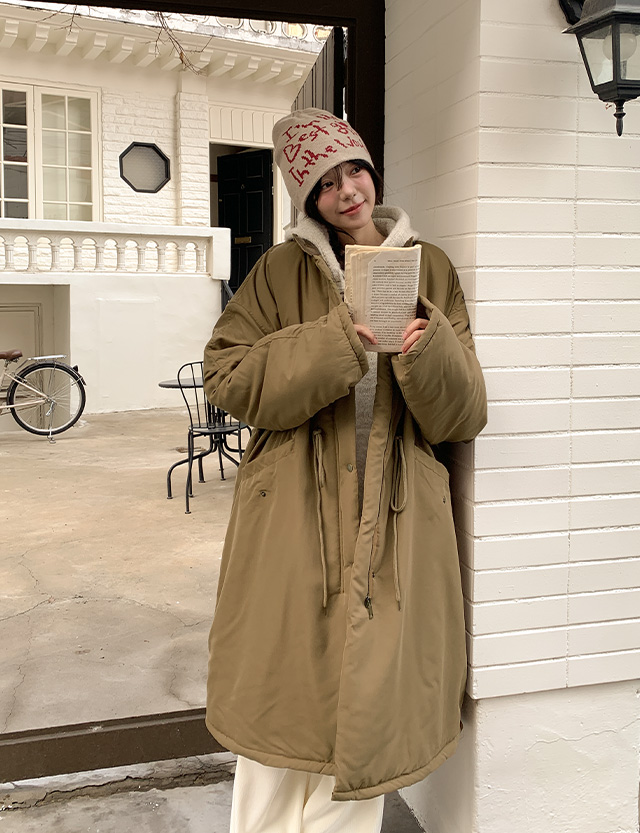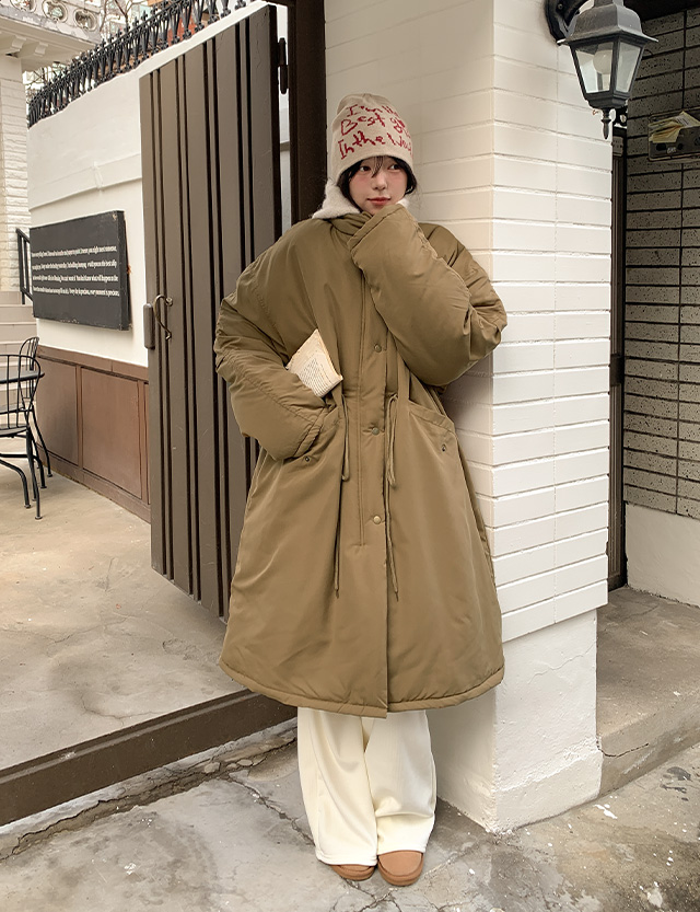 켄티 목배색 스트링 야상 롱 패딩 (4온스) 85745