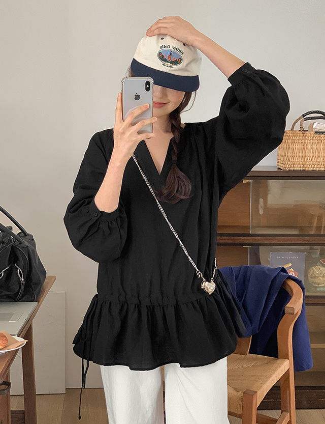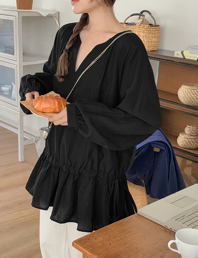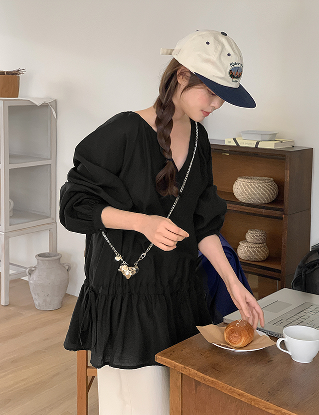 - 넥라인에 V 트임으로 답답해 보이지 않음