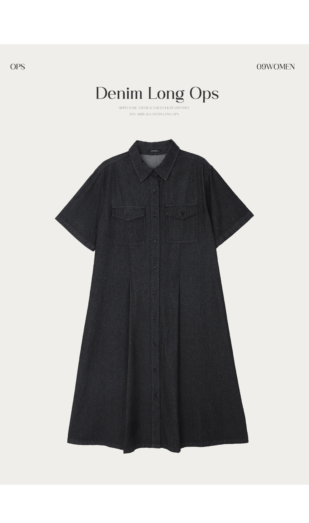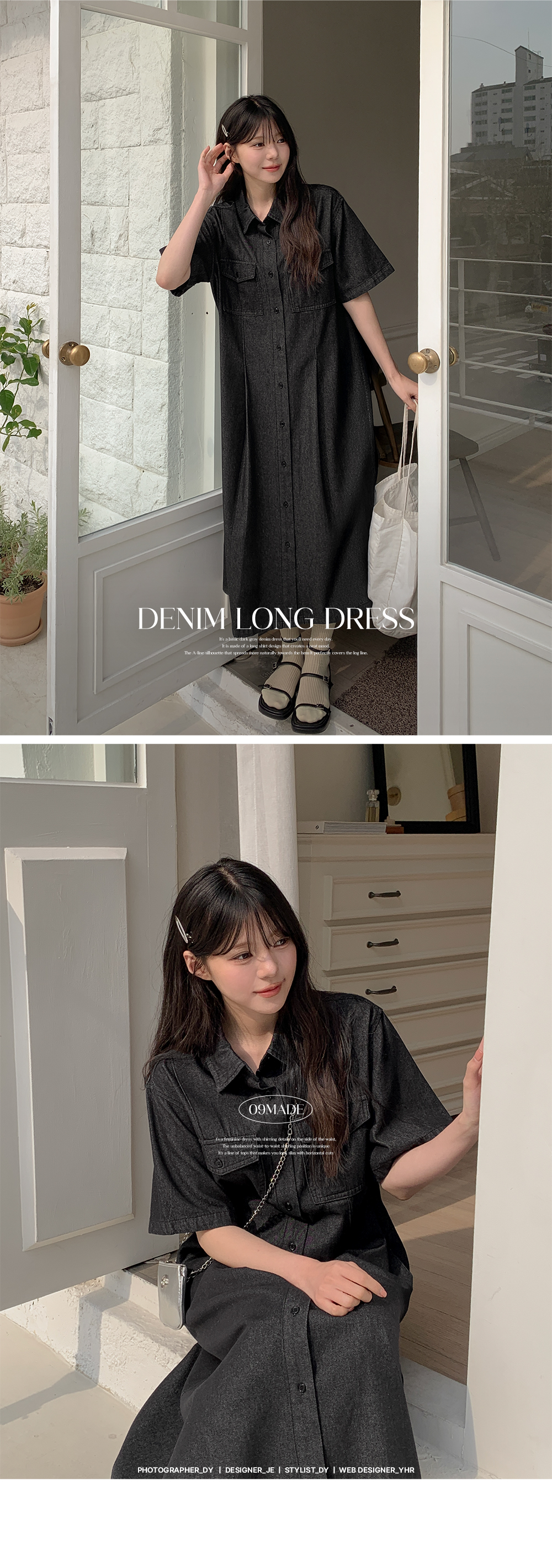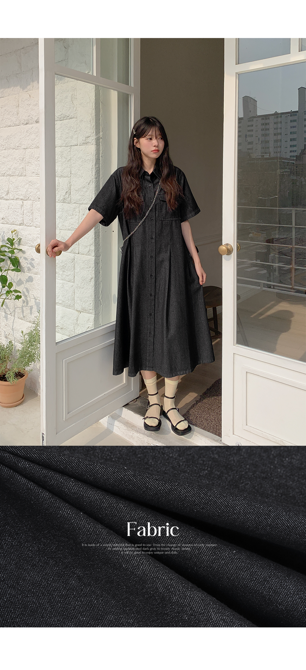 다크그레이 컬러의 데님 원피스예요.
