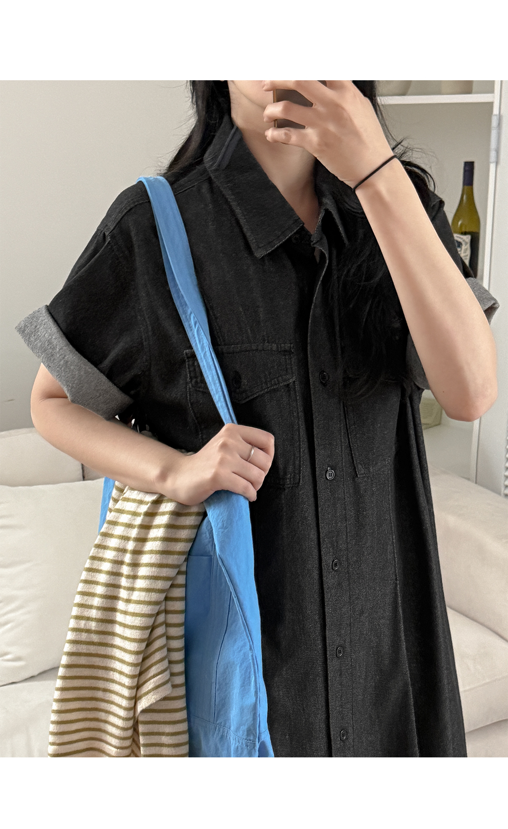 - 롱 셔츠 디자인으로 단정한 무드와 체형 완벽커버