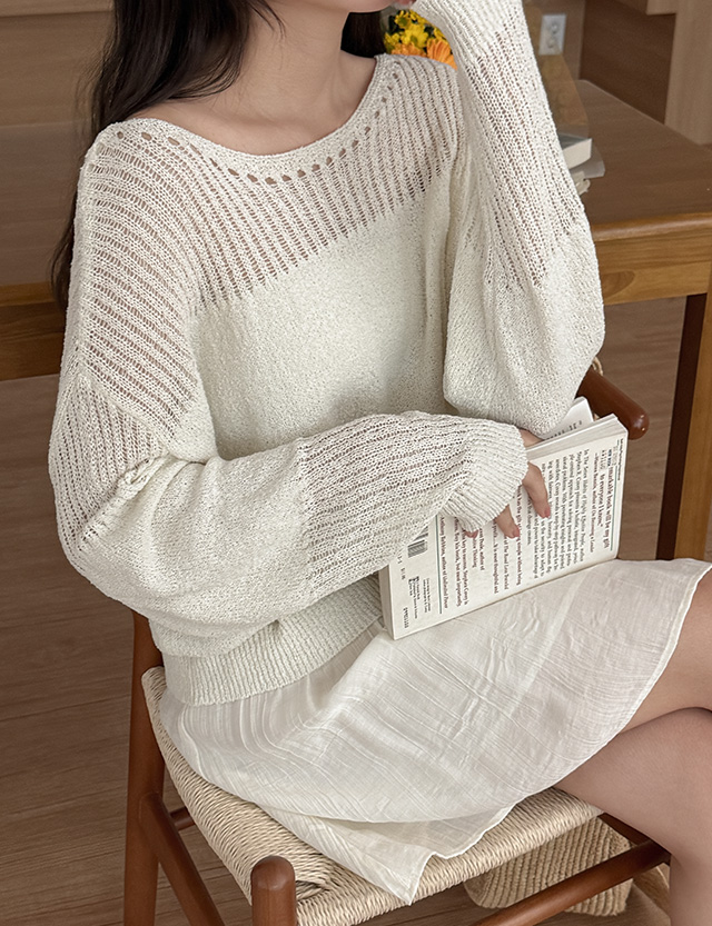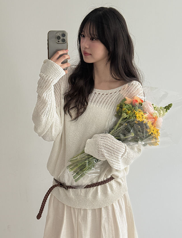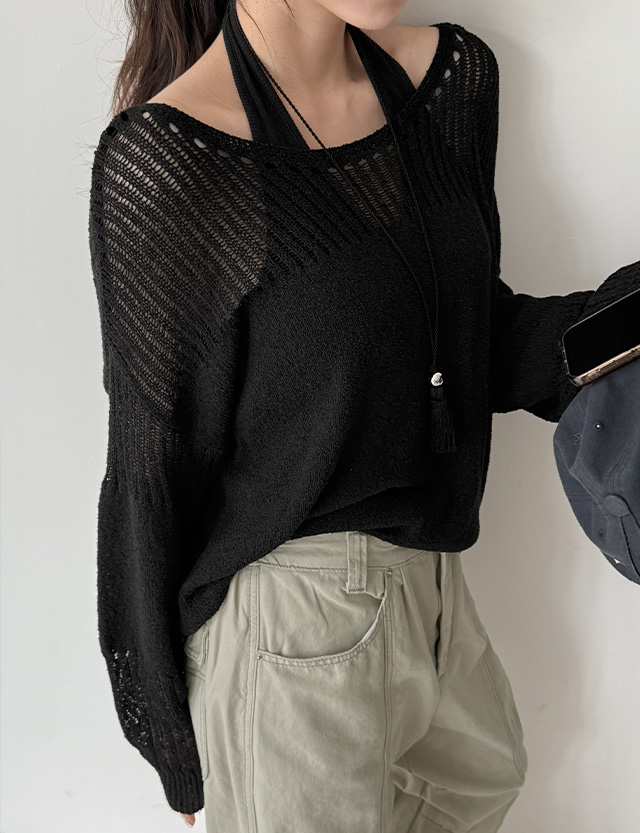 미스트 스카시 펀칭 보트넥 니트 86965