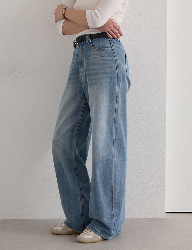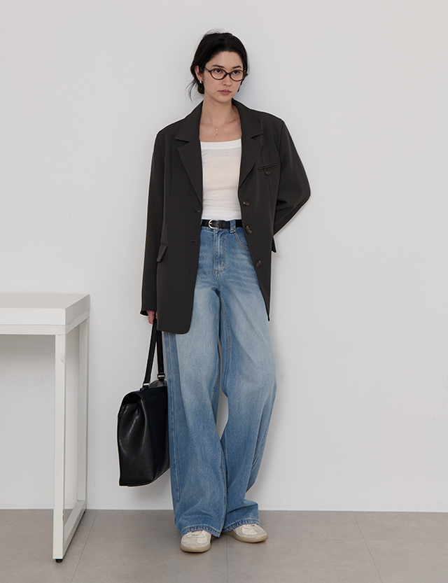 넓게 퍼진 워싱 디테일로 전체적으로 시원하고 힙한 무드