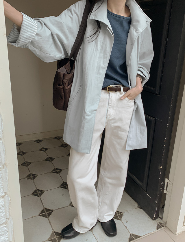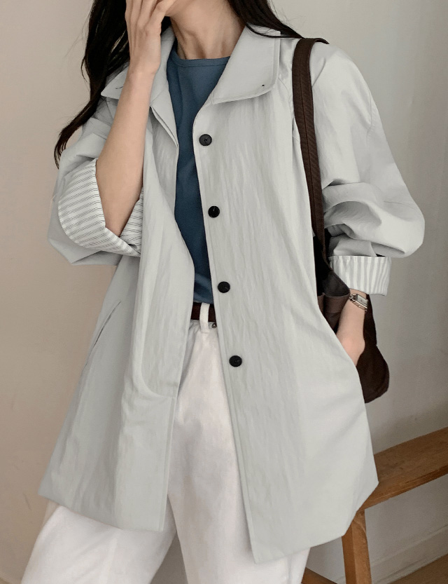 라울라 배색 소매 루즈핏 하프 봄 자켓 87068