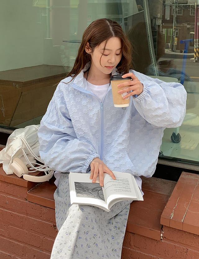 - 입체감 있는 플라워 패턴이 사랑스러운 집업