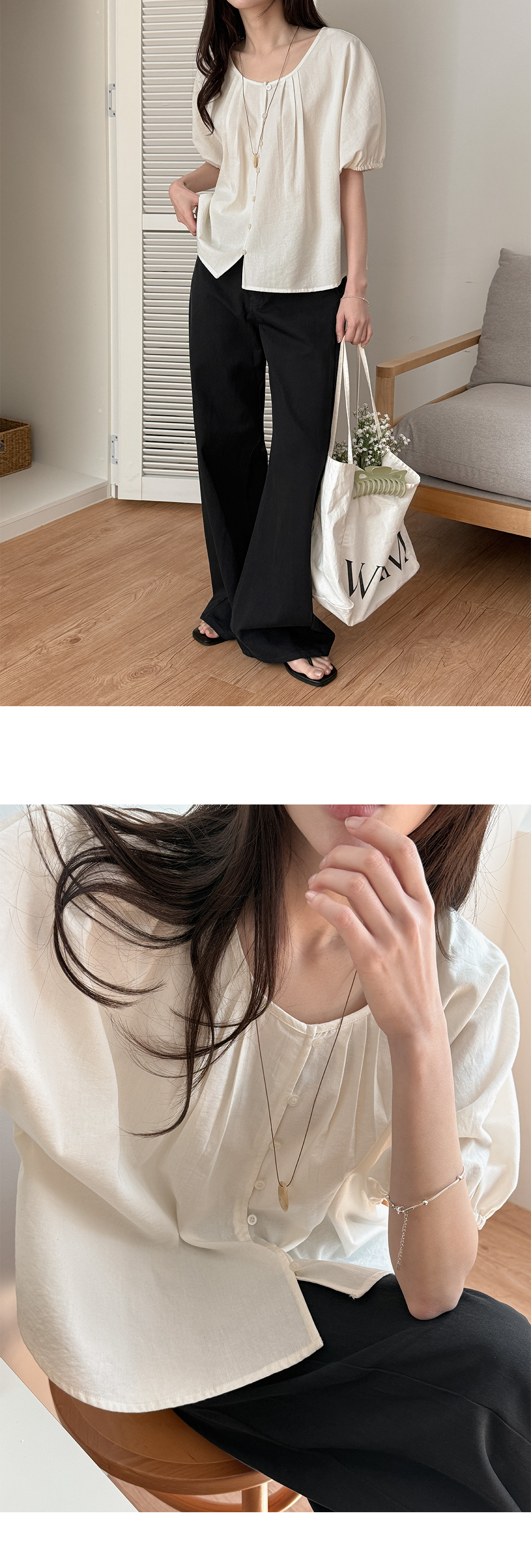 - 라운드 넥 + 버튼 포인트로