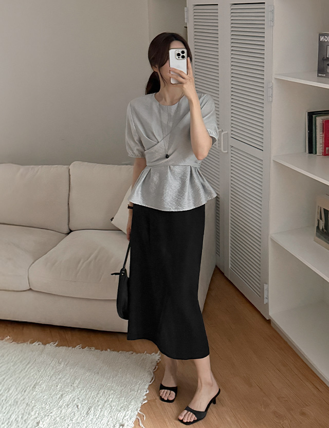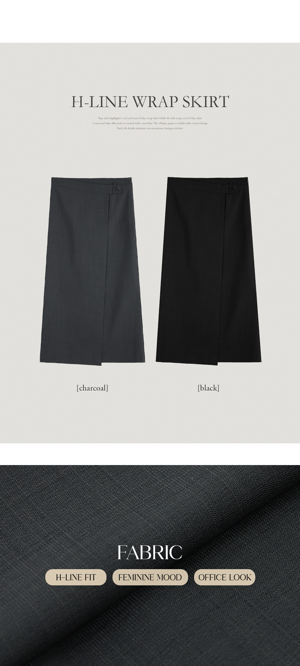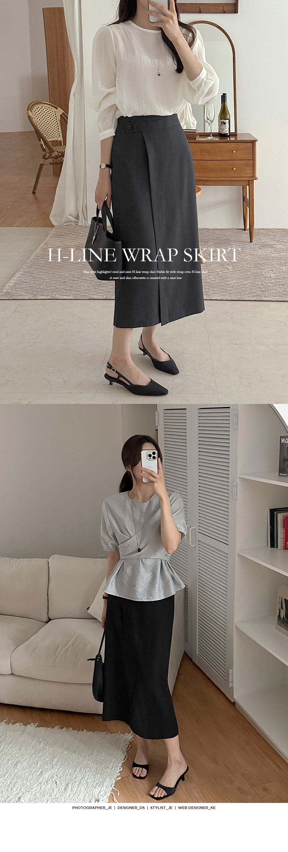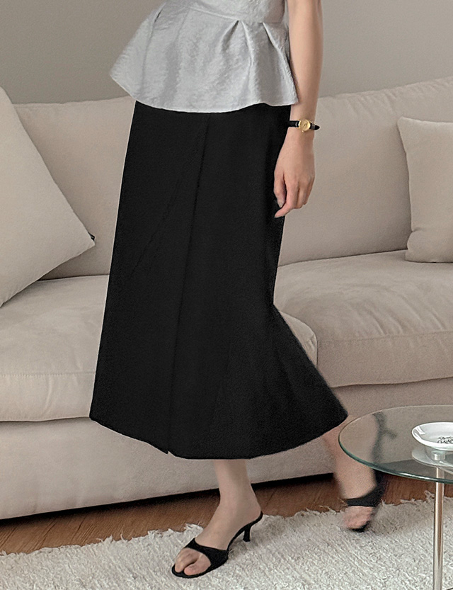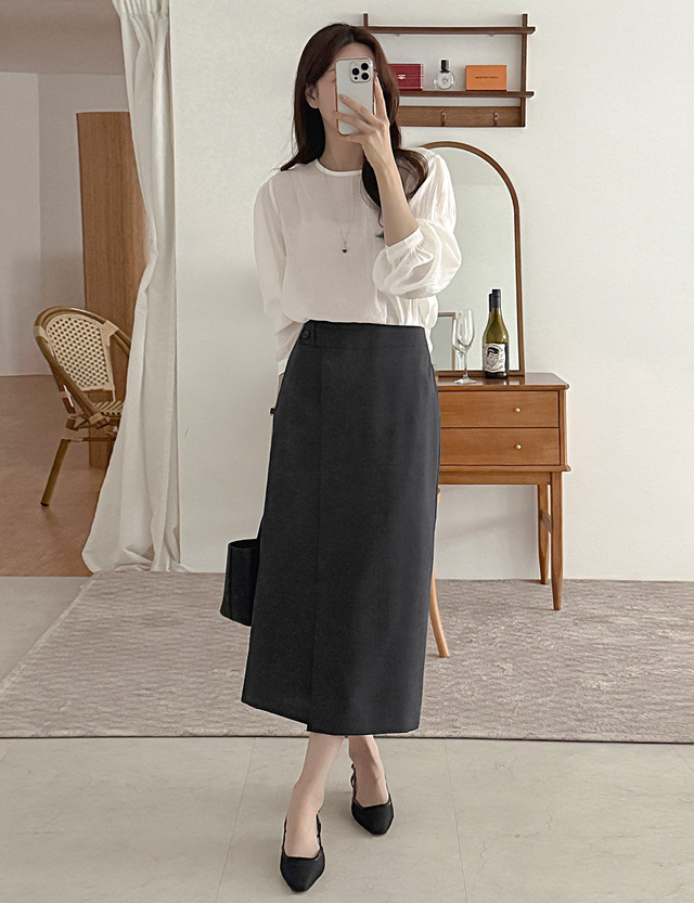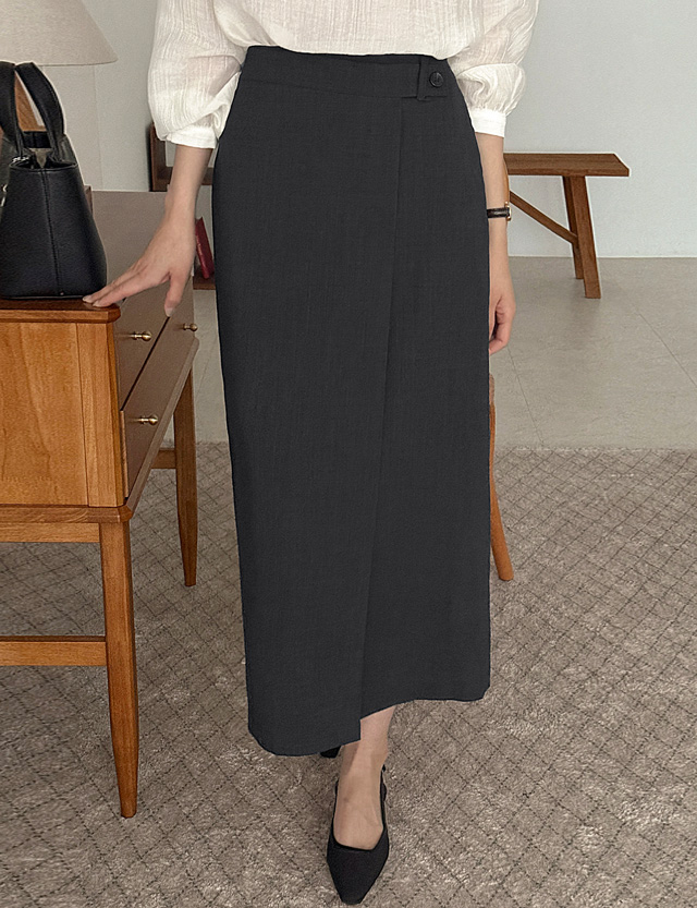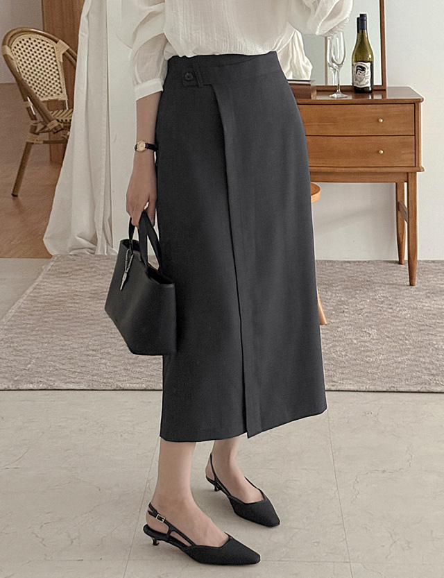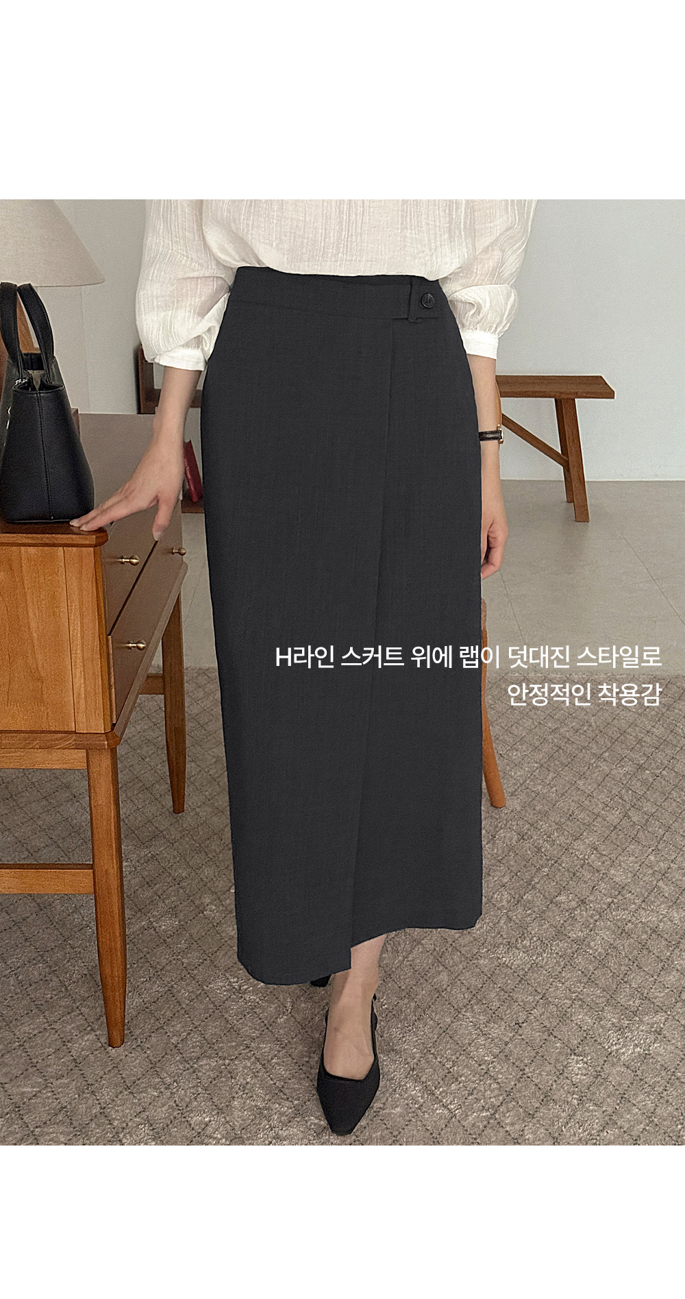 - H라인 스커트 위에 랩이 덧대진