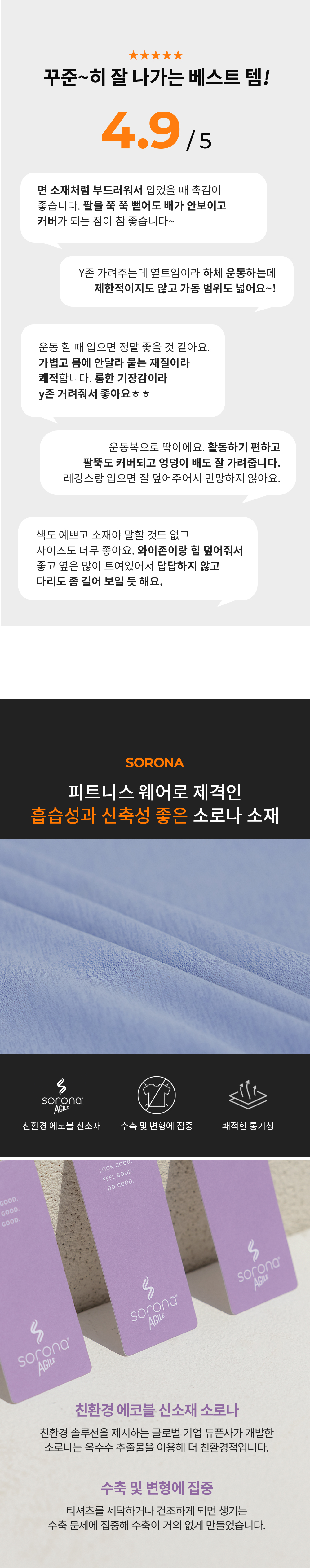 ·흡습성이 좋아 땀이 많이 나는 피트니스 웨어로 제격
