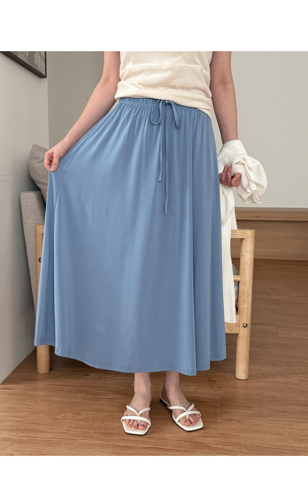 찰랑이는 부드러운 착용감이 돋보이는 스커트에요