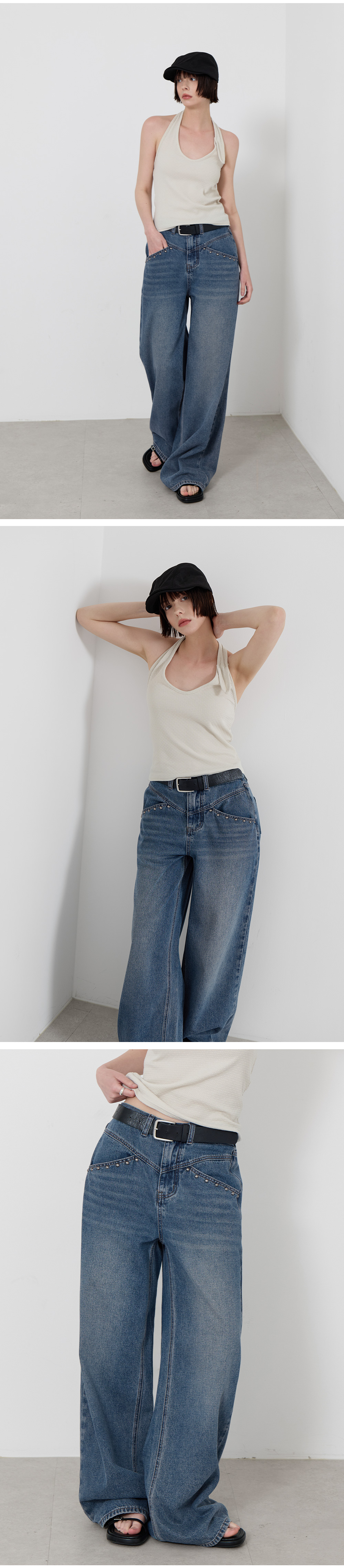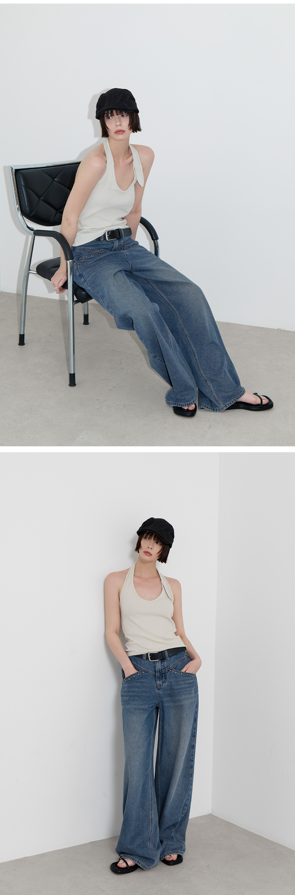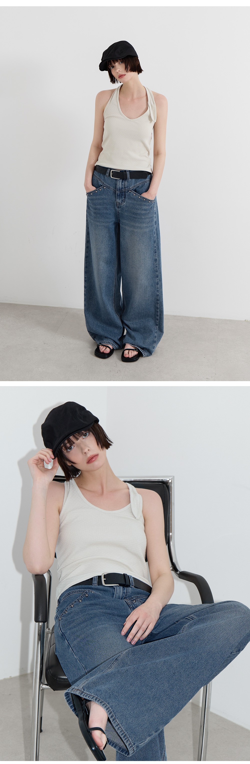 · 루즈한 기장감으로 군살 커버와 롱한 레그라인 연출