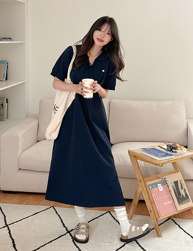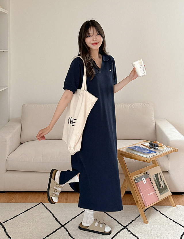 연출되는 루즈핏 카라 원피스