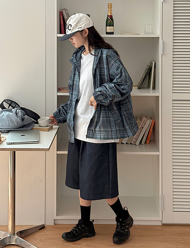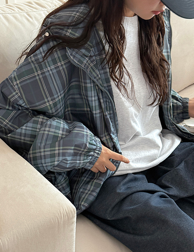 토이톨 루즈핏 체크 후드 바람막이 점퍼