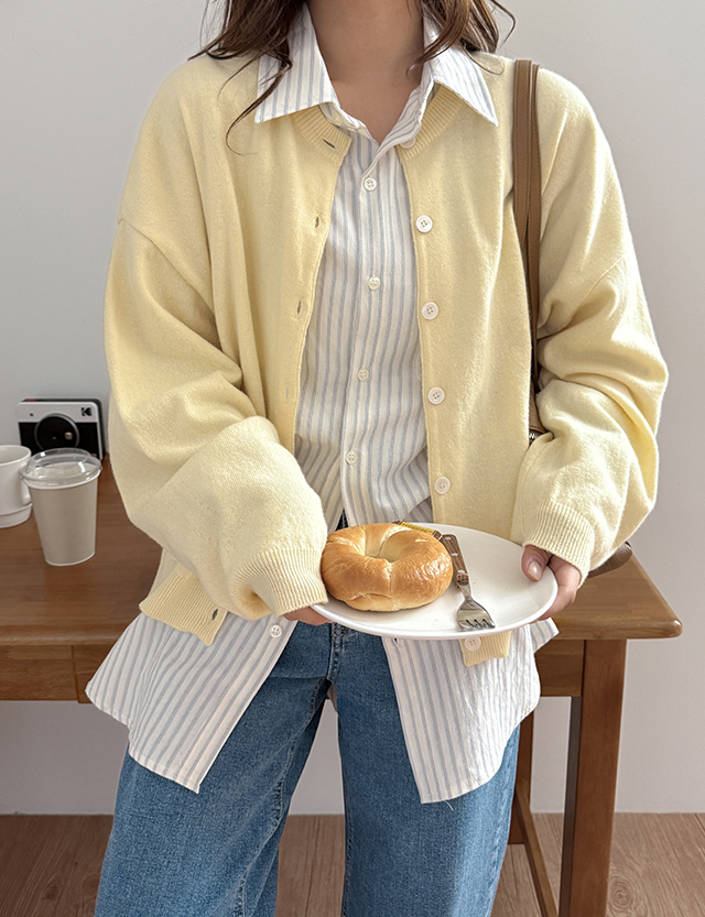 - 니트와 비슷한 컬러의 단추로 통일감