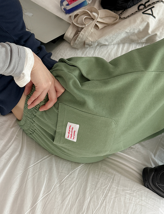 - 밴딩으로 조거 라인을 잡아주어 핏 연출이 쉬움