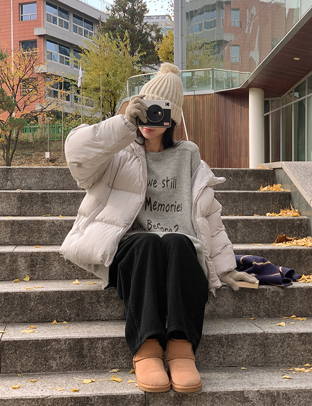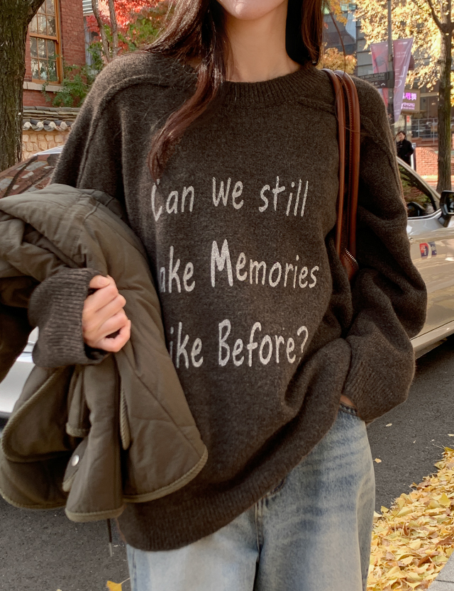 레터링으로 포인트를 준 루즈핏 니트
