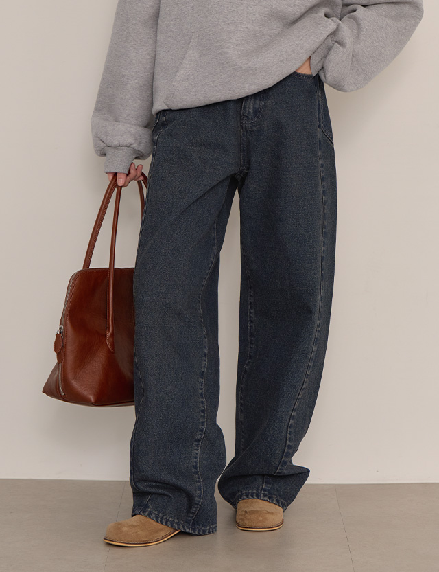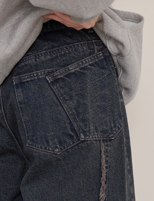 페이티 뒷밴딩 더블 포켓 와이드 데님 팬츠 85002