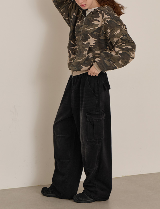 가인루 절개 카고 데님 밴딩 팬츠 85324