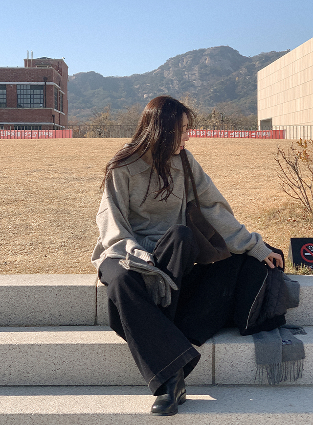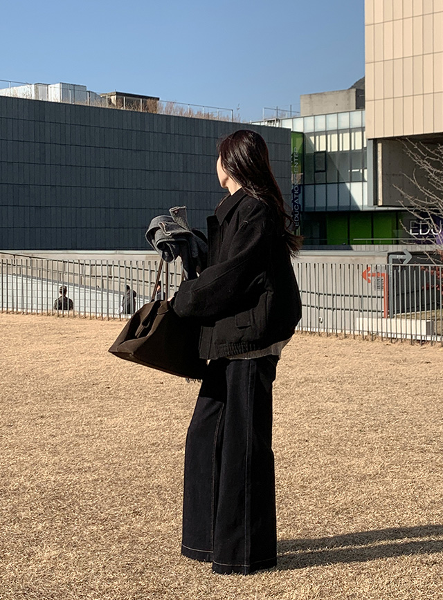 배색 스티치가 룩에 세련된