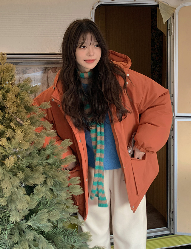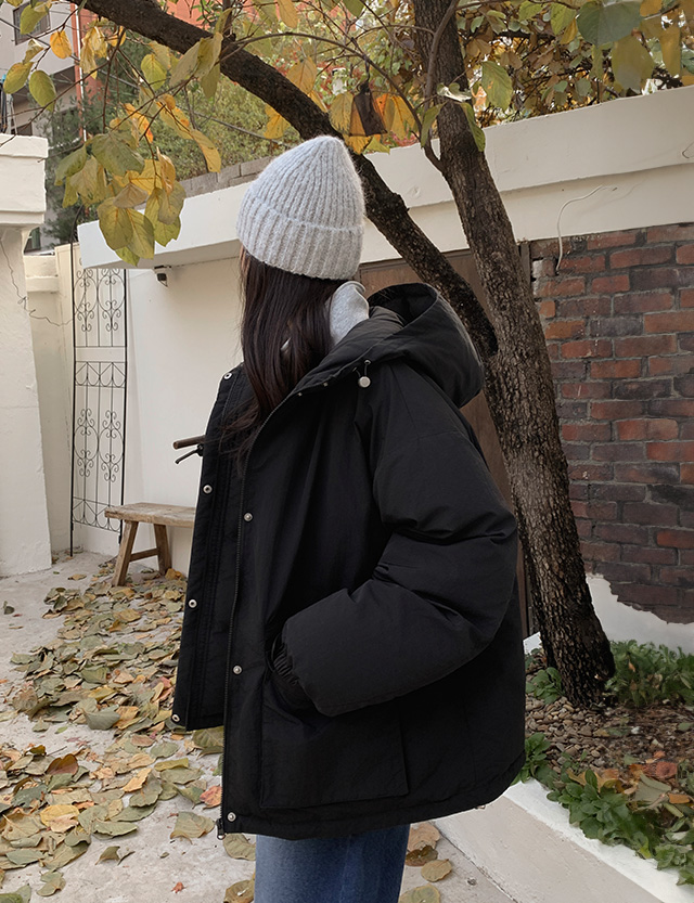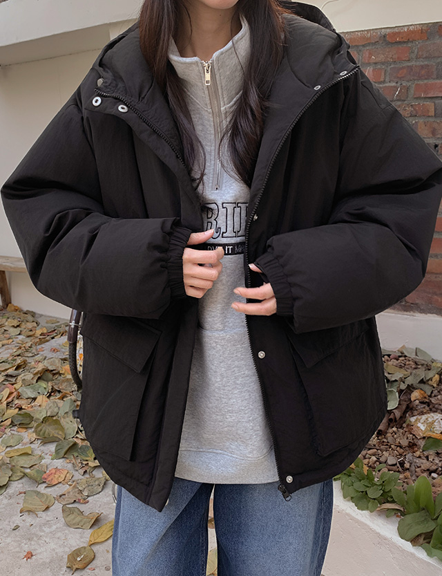 루즈핏 하프 후드 패딩 점퍼