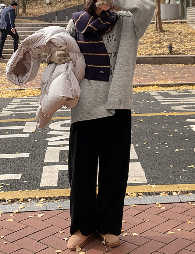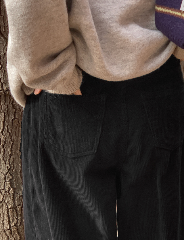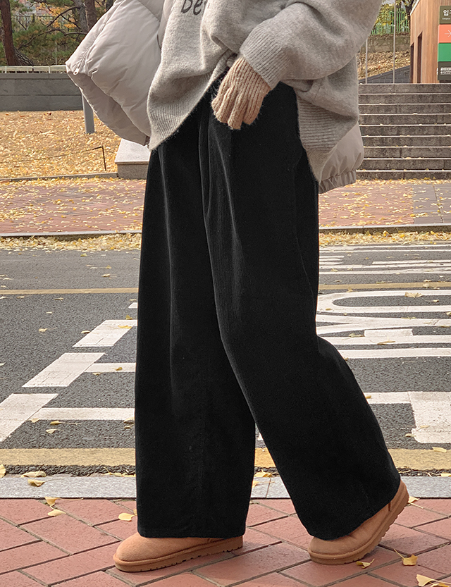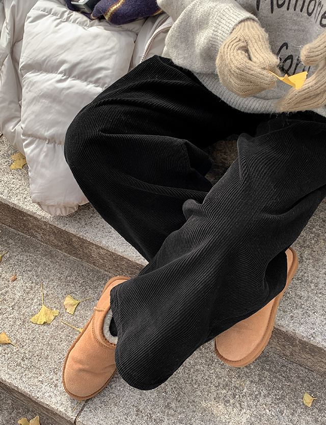 와이드한 핏으로 툭 떨어져 다리가 곧고 길어 보이는 코듀로이 팬츠예요❄️