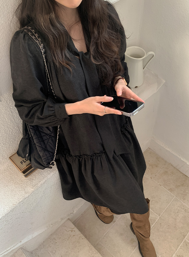 넥 라인에 타이 디테일을 더해