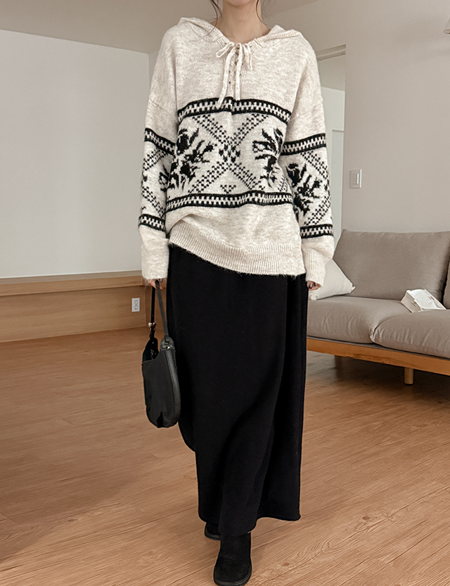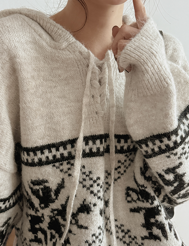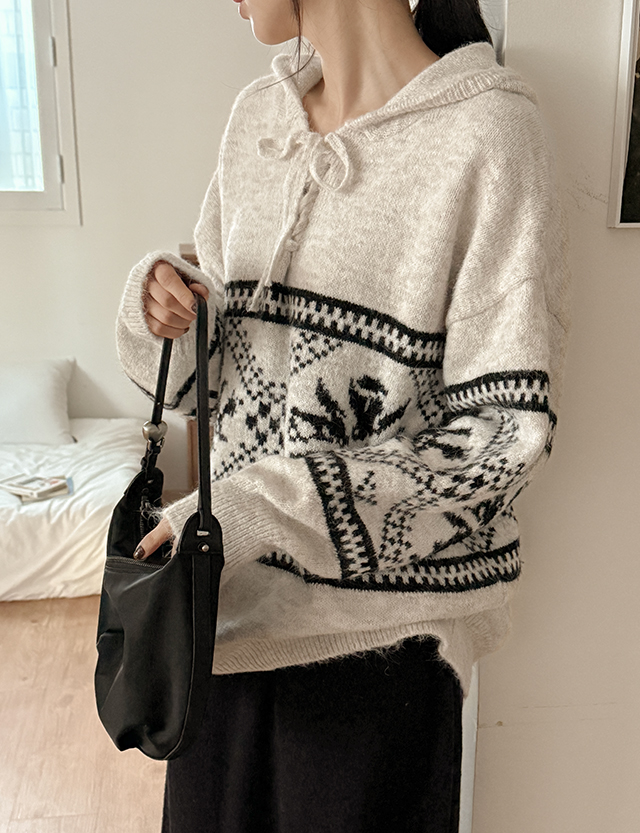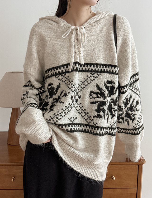 빈티지한 노르딕 패턴에 후드 디자인을 더해,