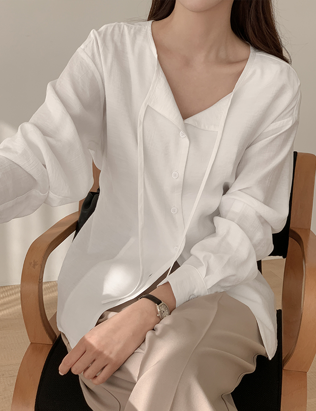 쇄골이 은은하게 드러나는 앞트임 디자인으로