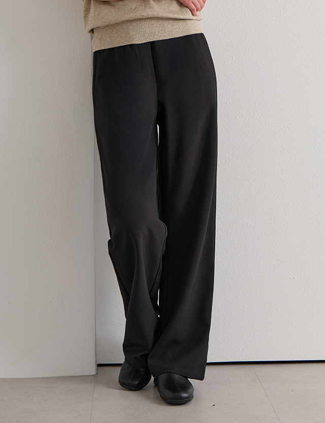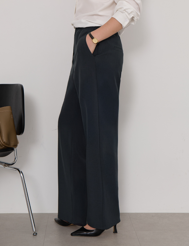 Wrinkle-Free Semi-Wide Elastic Waist Slacks · 전체 밴딩 디테일로 편안한 허리 착용감